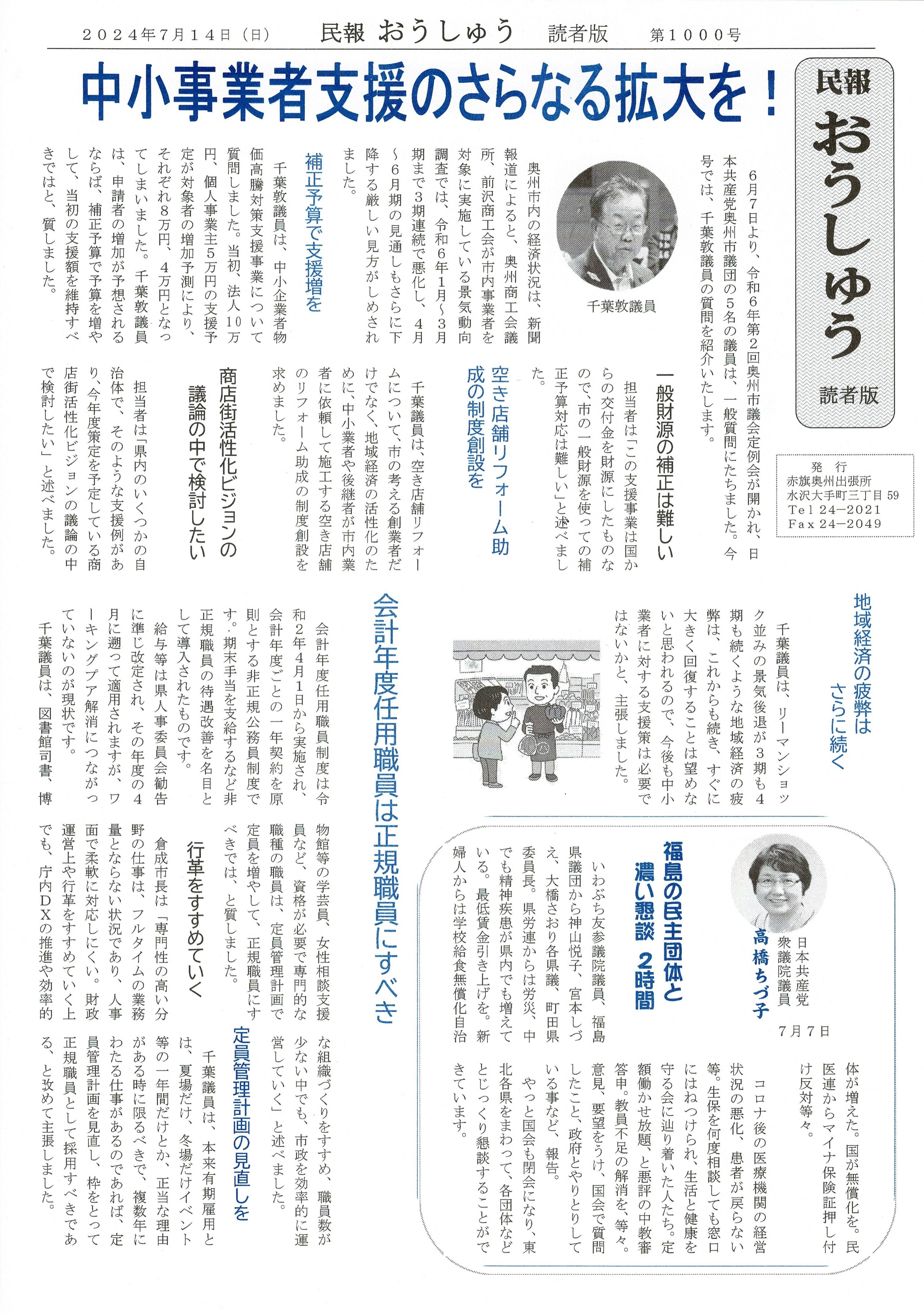 「民報おうしゅう第1000号」はこちら