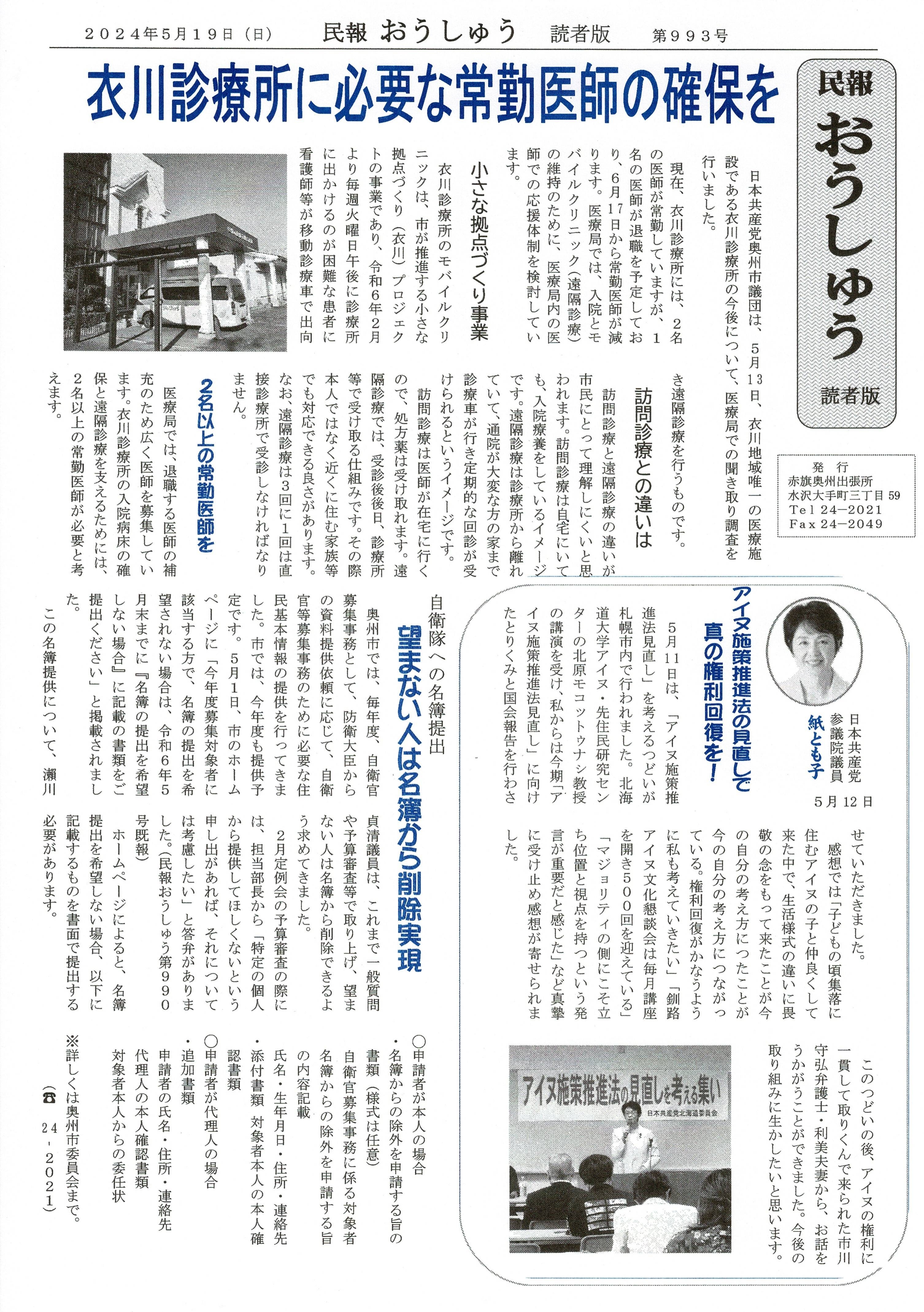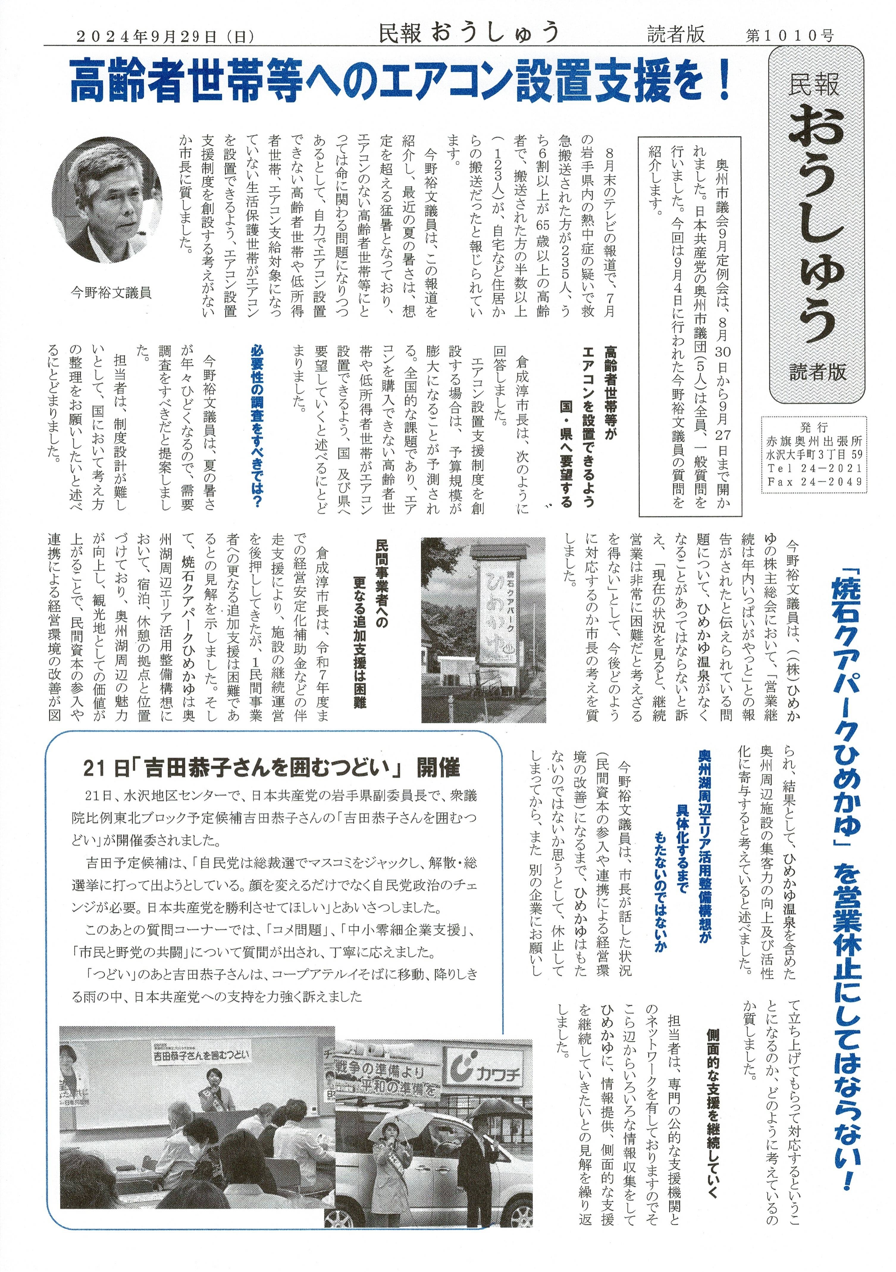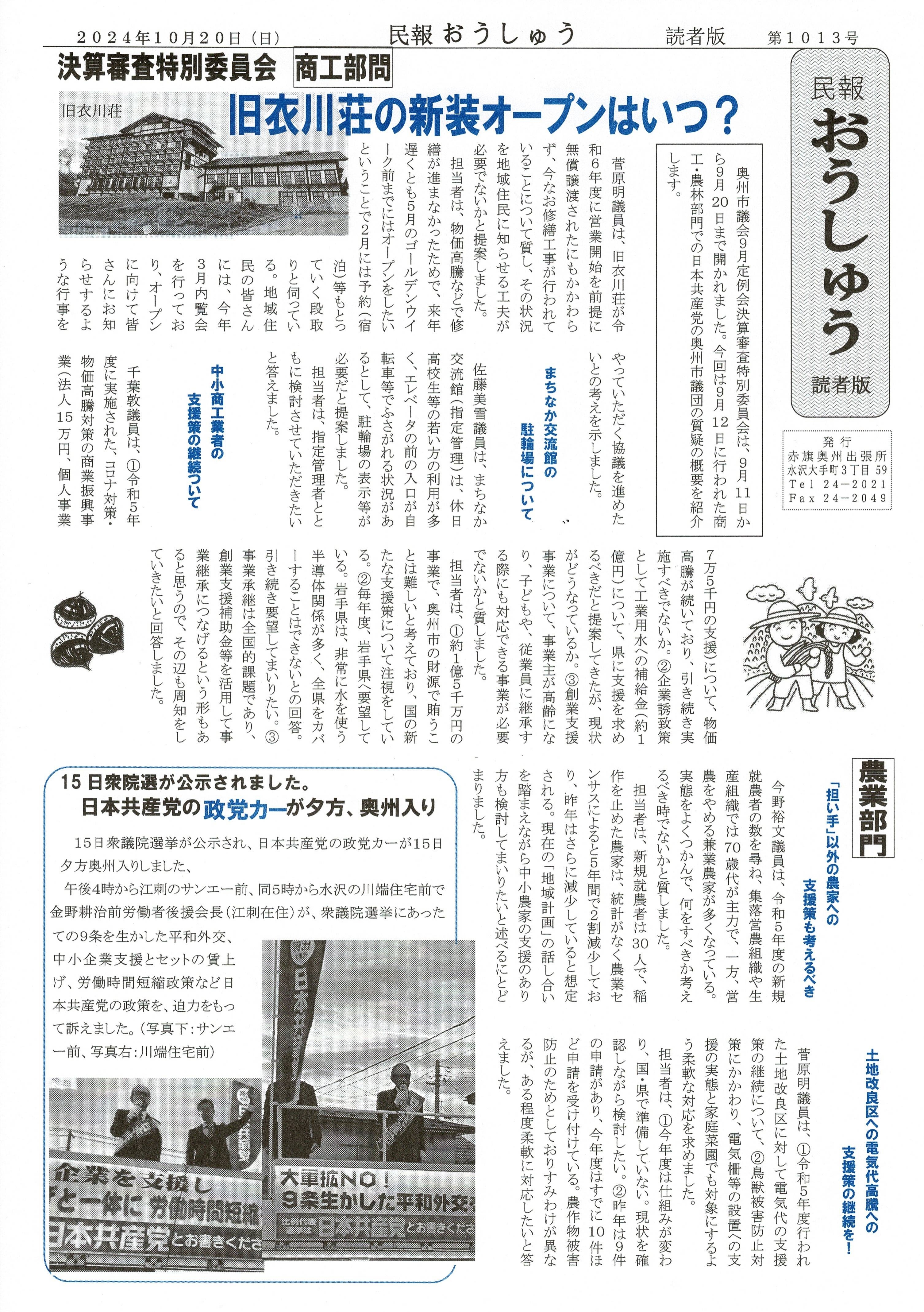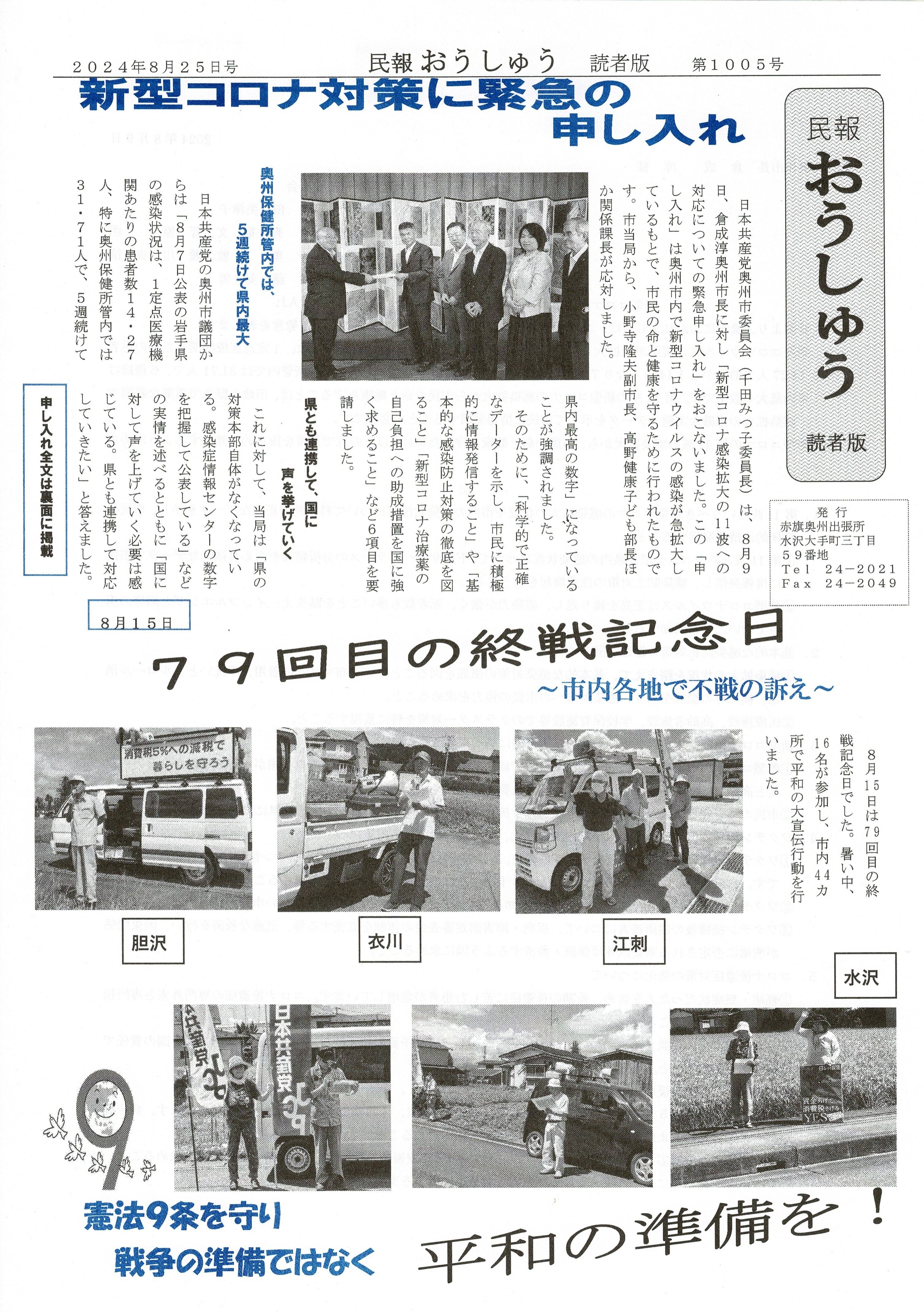 「民報おうしゅう第1021号」はこちら