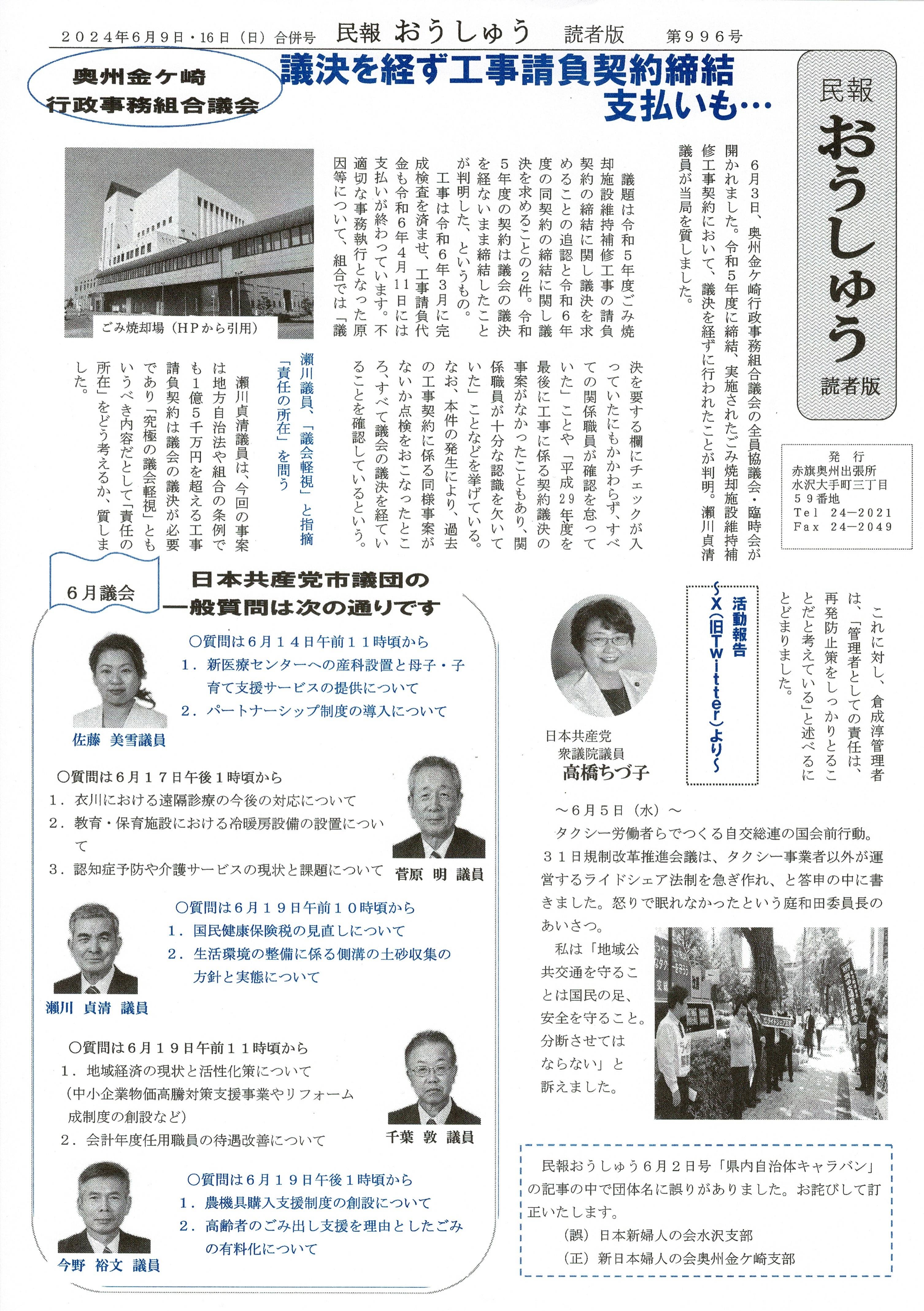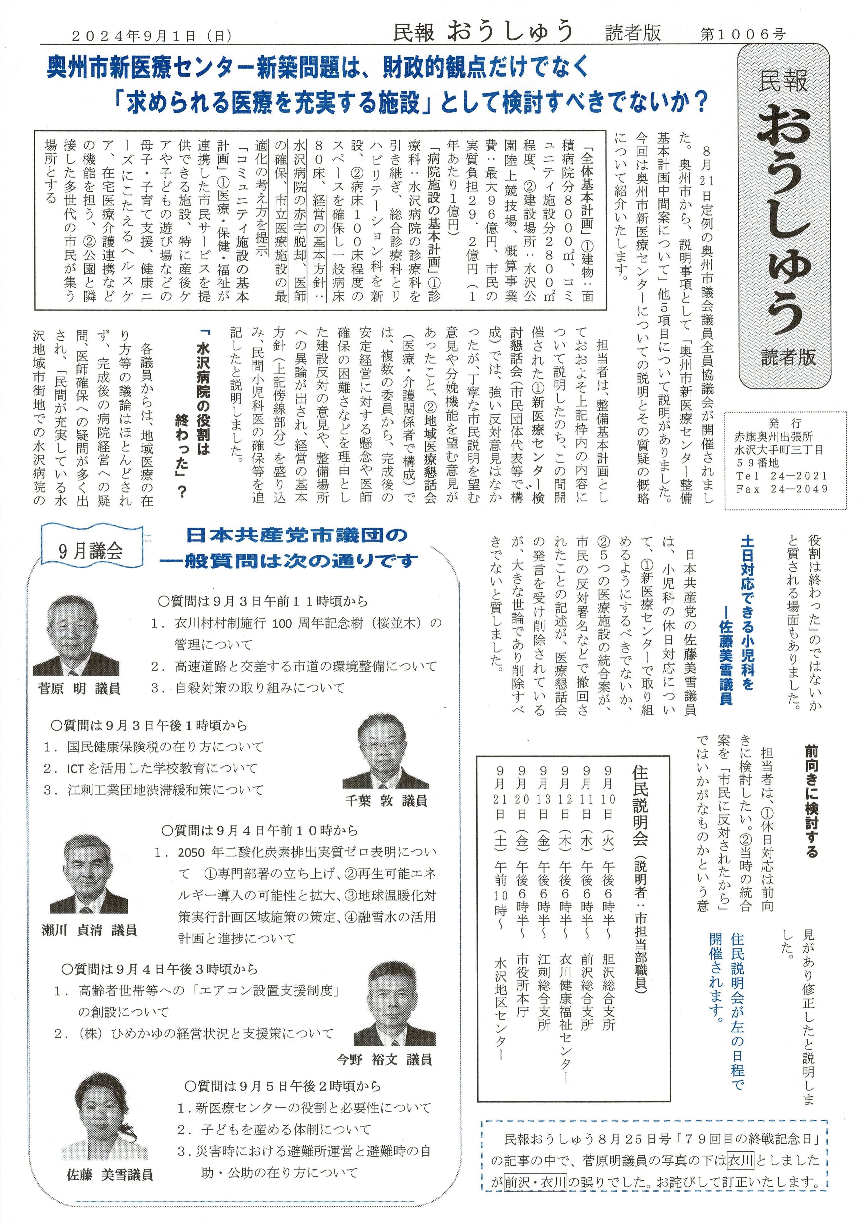 「民報おうしゅう第1006号」はこちら