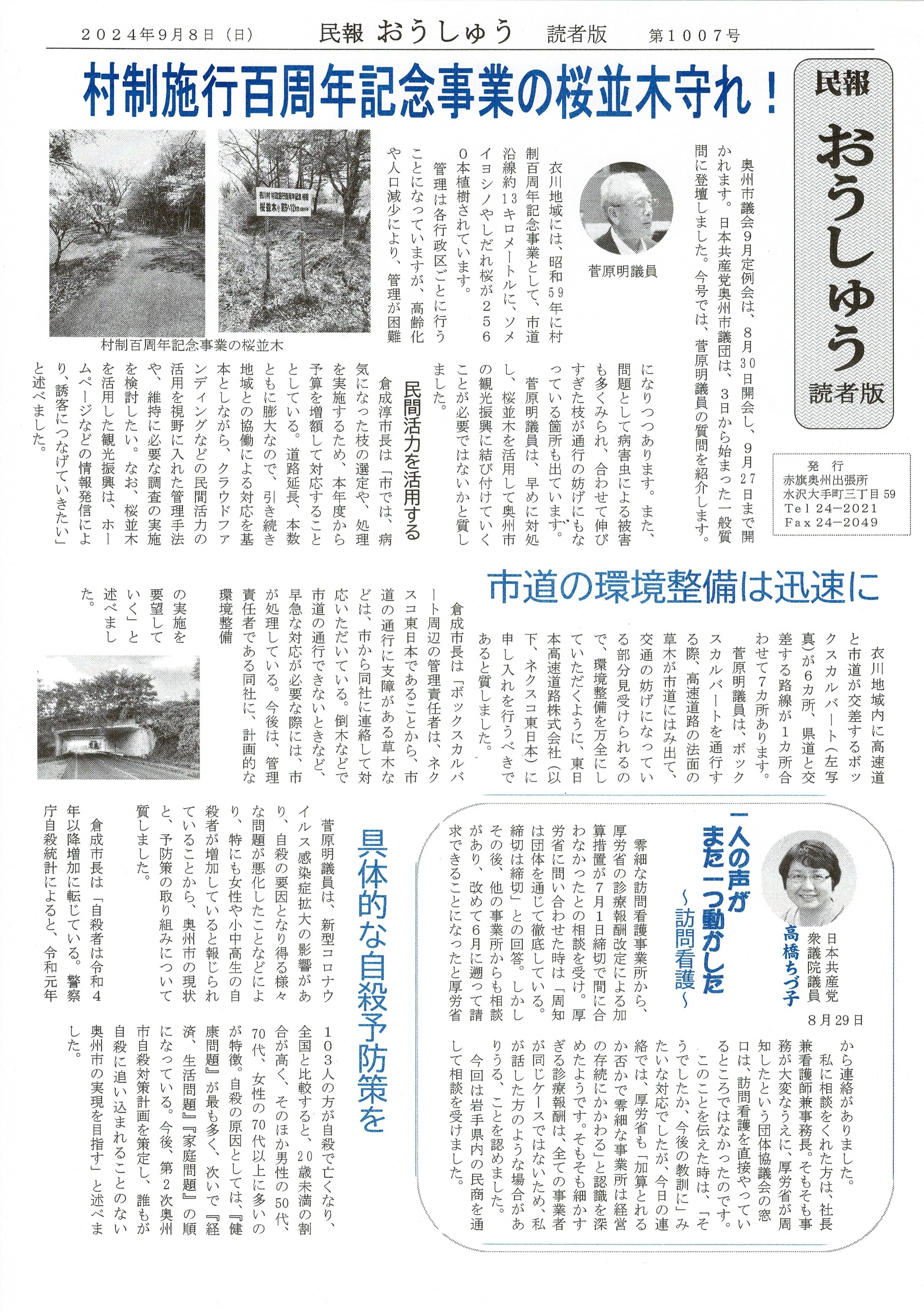 「民報おうしゅう第1007号」はこちら