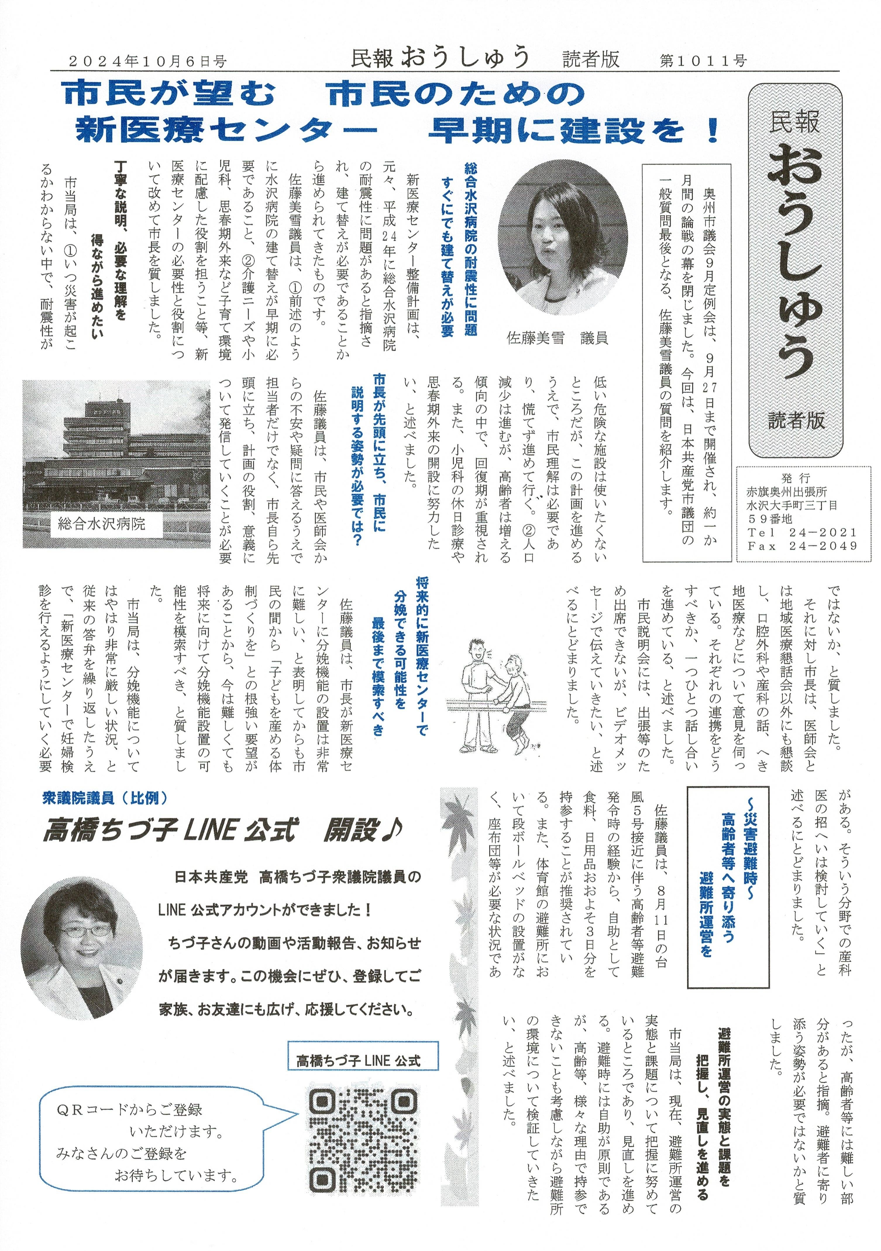 「民報おうしゅう第1011号」はこちら