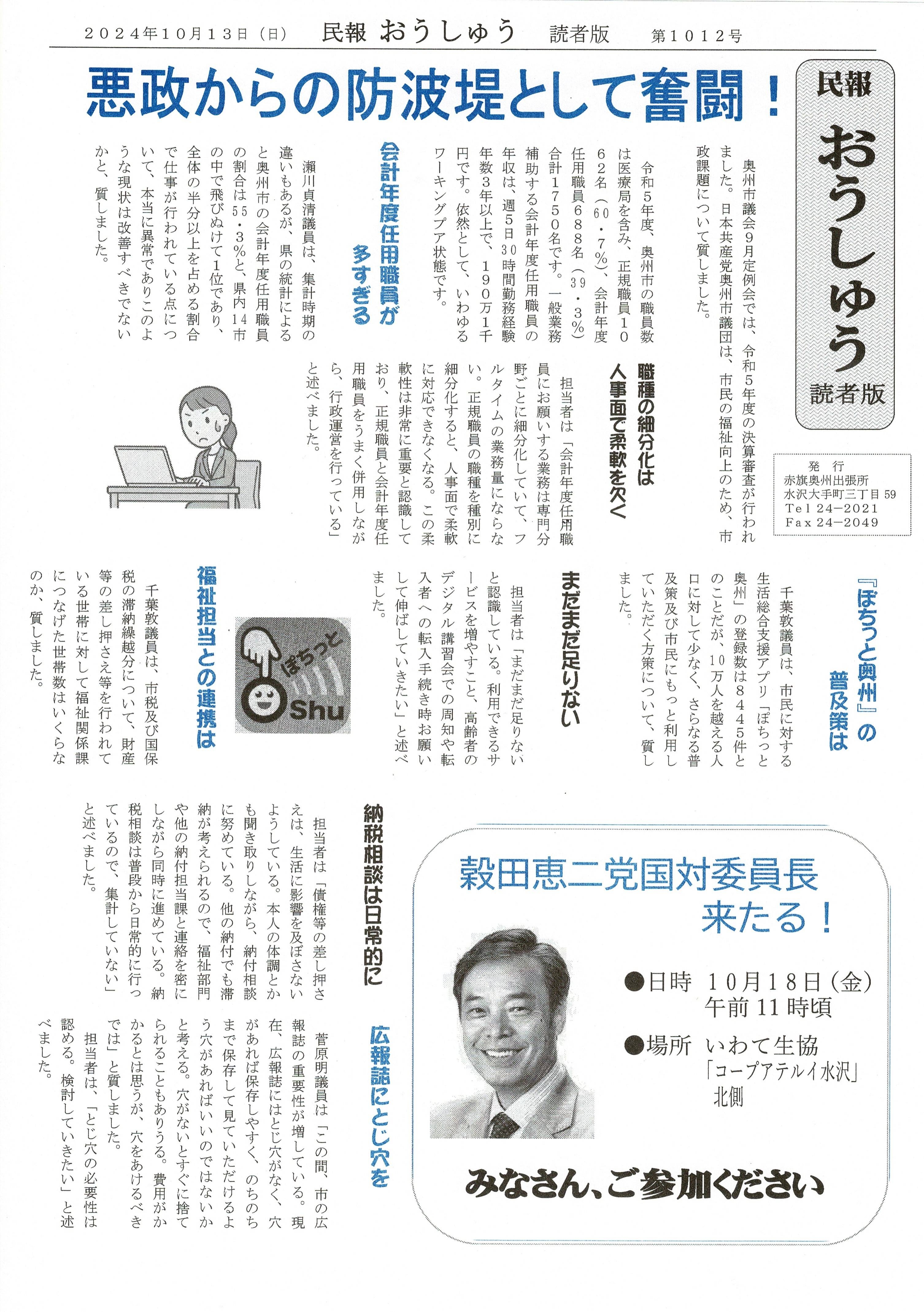 「民報おうしゅう第1012号」はこちら