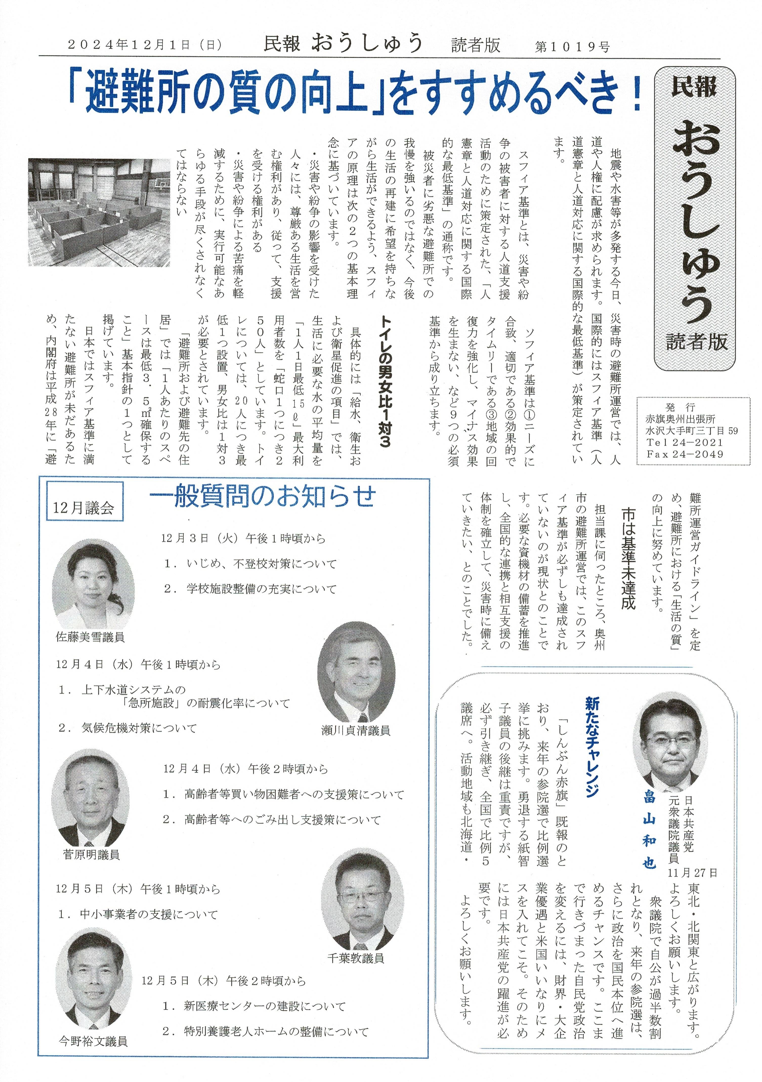 「民報おうしゅう第1019号」はこちら