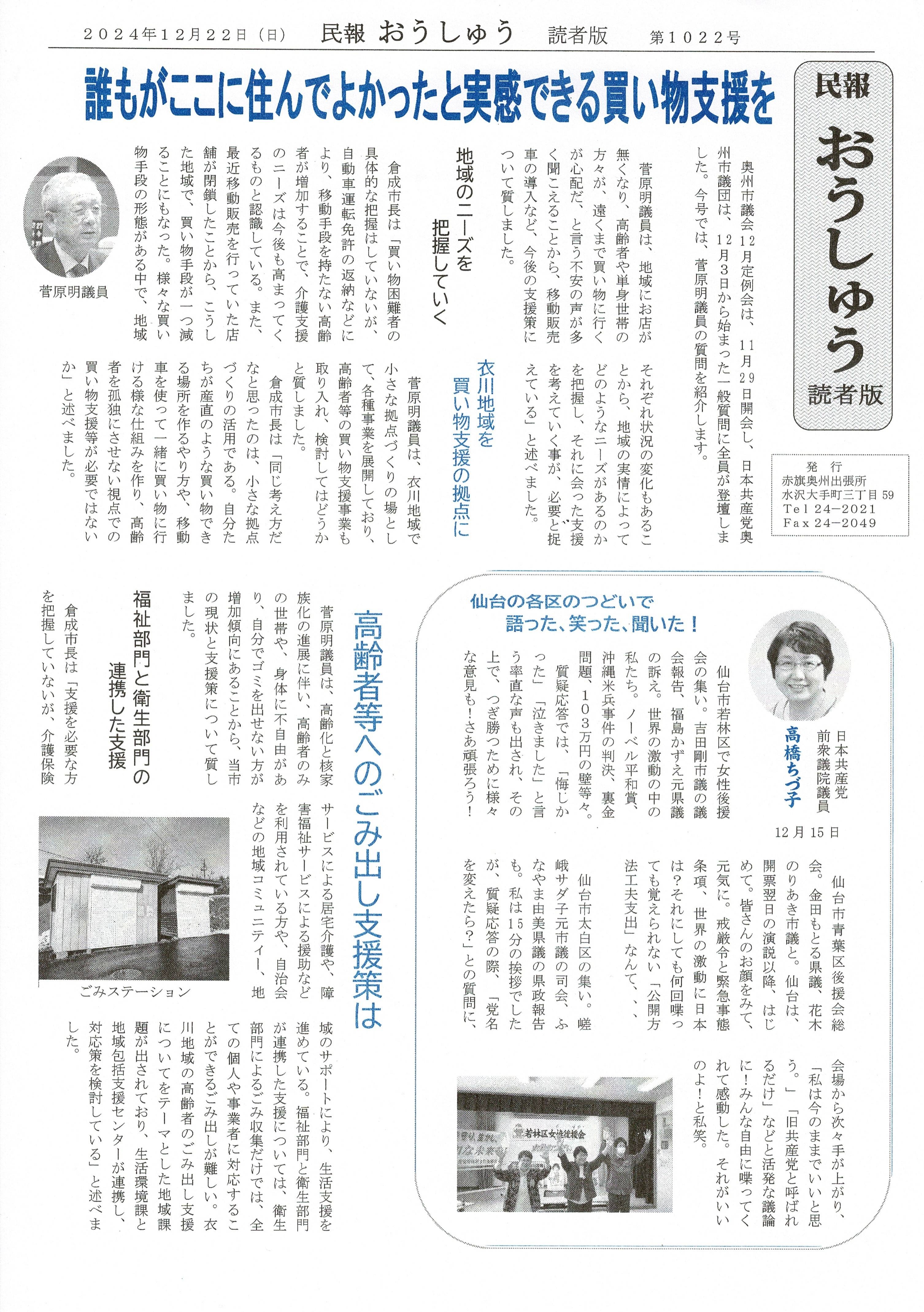 「民報おうしゅう第1022号」はこちら