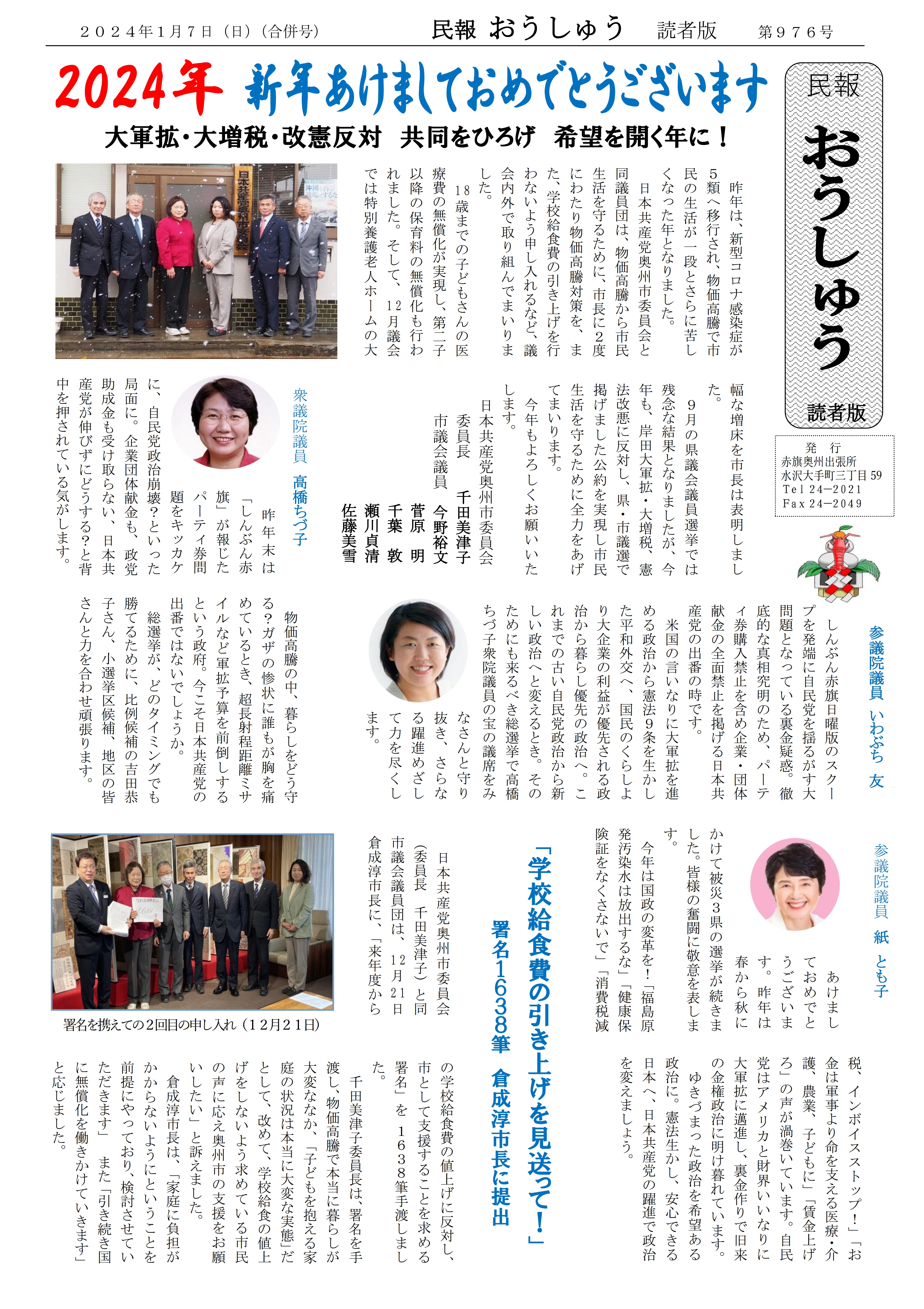 「民報おうしゅう第976号」はこちら