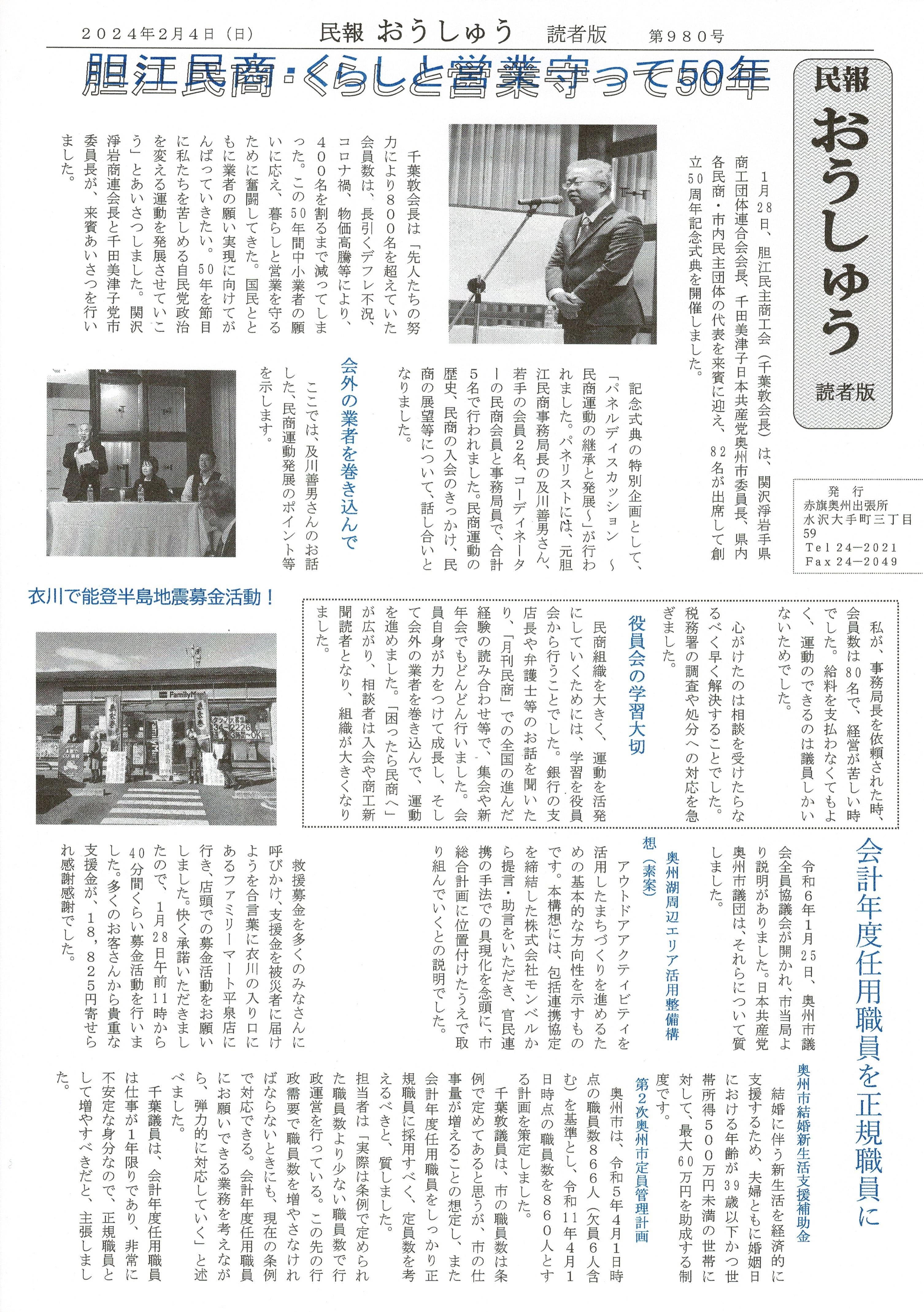 「民報おうしゅう第980号」はこちら