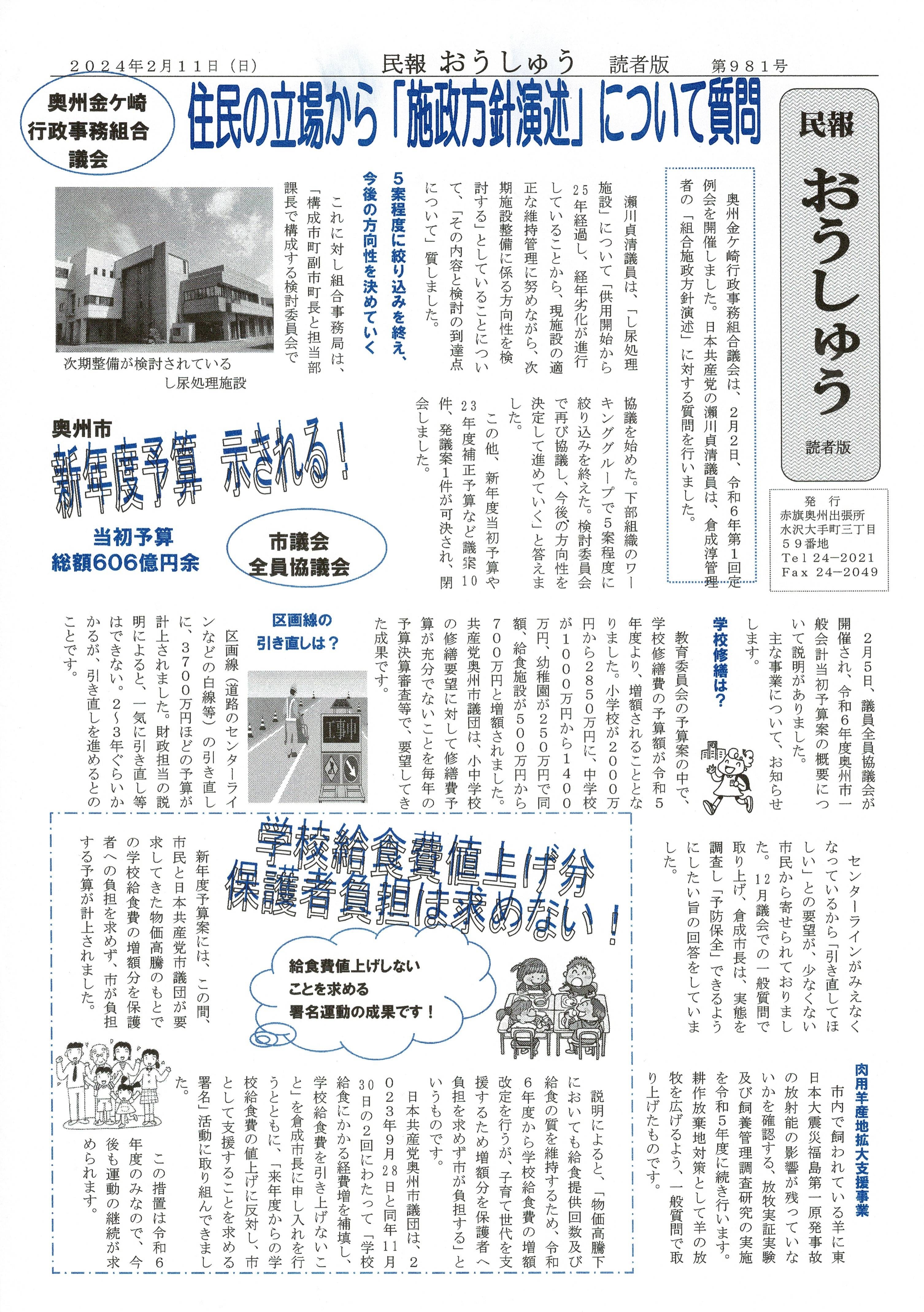 「民報おうしゅう第981号」はこちら