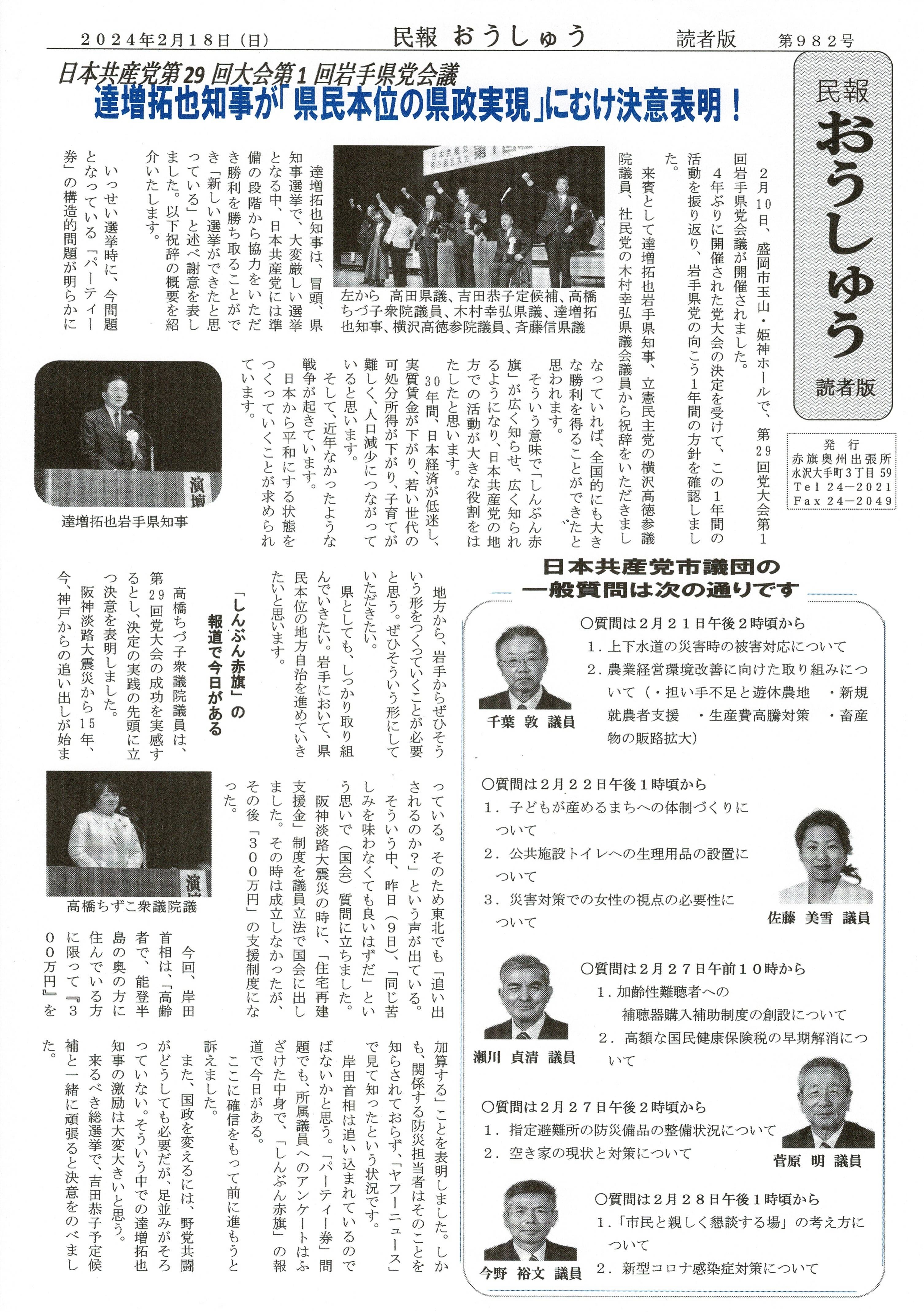 「民報おうしゅう第982号」はこちら
