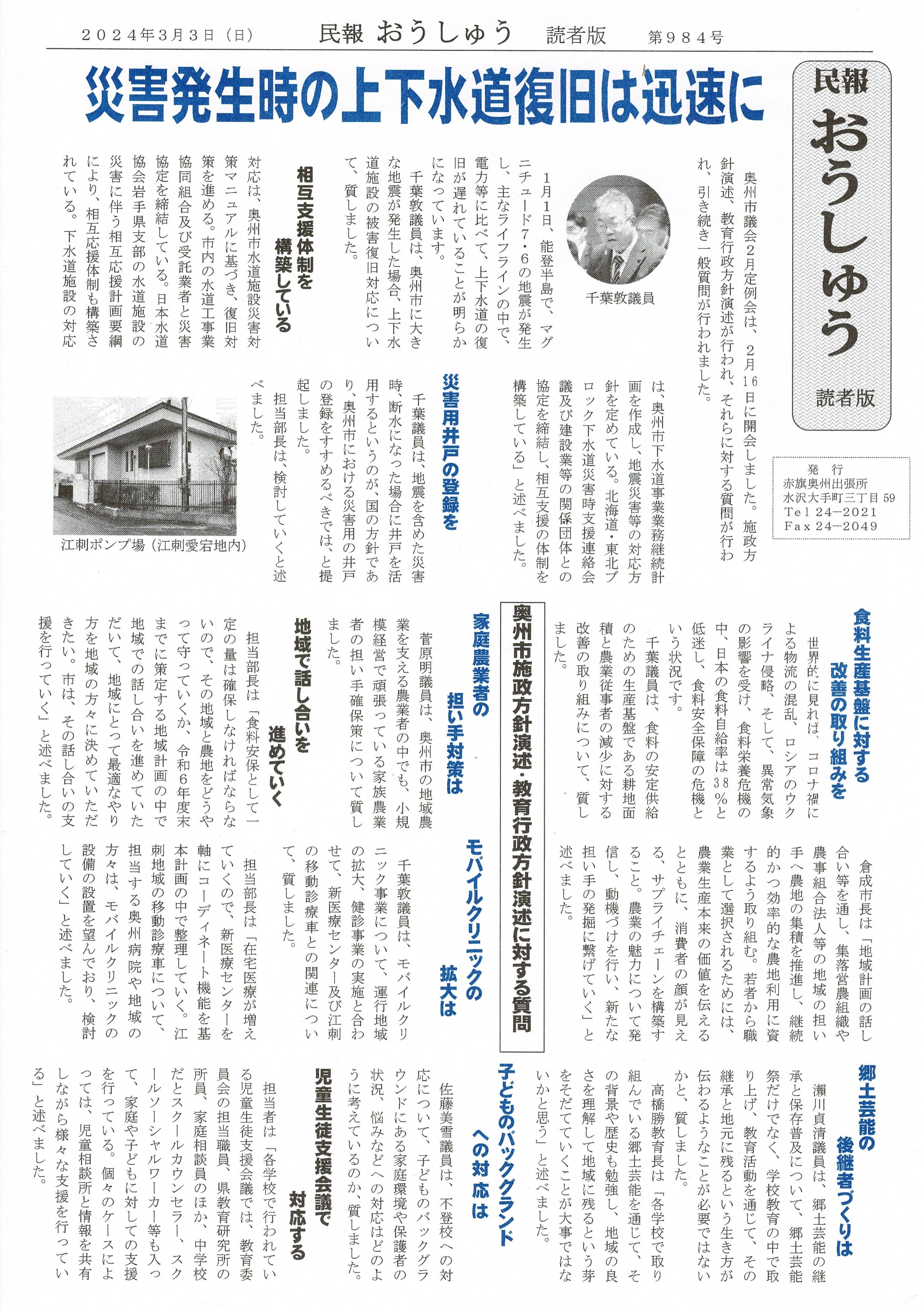 「民報おうしゅう第984号」はこちら