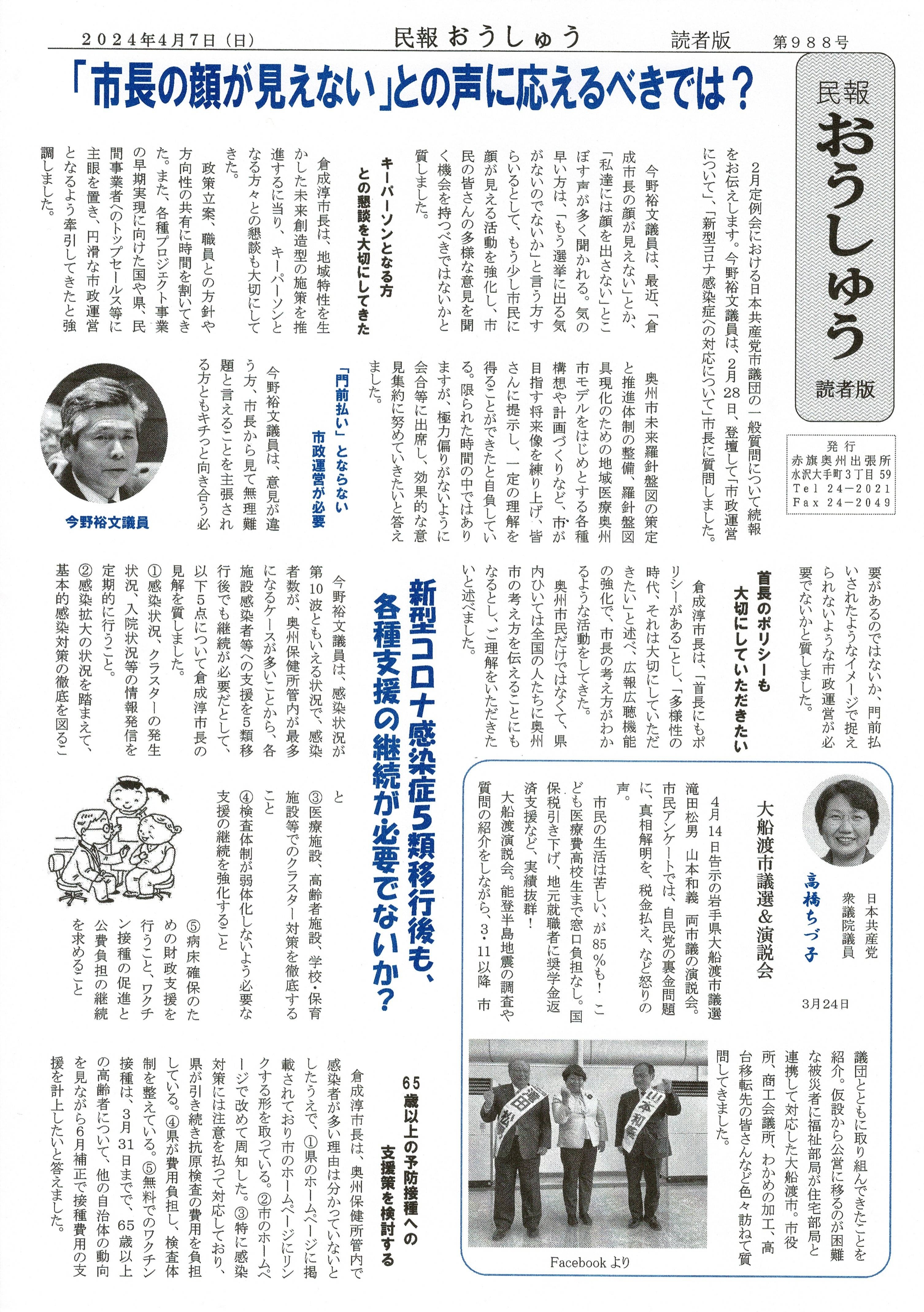 「民報おうしゅう第988号」はこちら