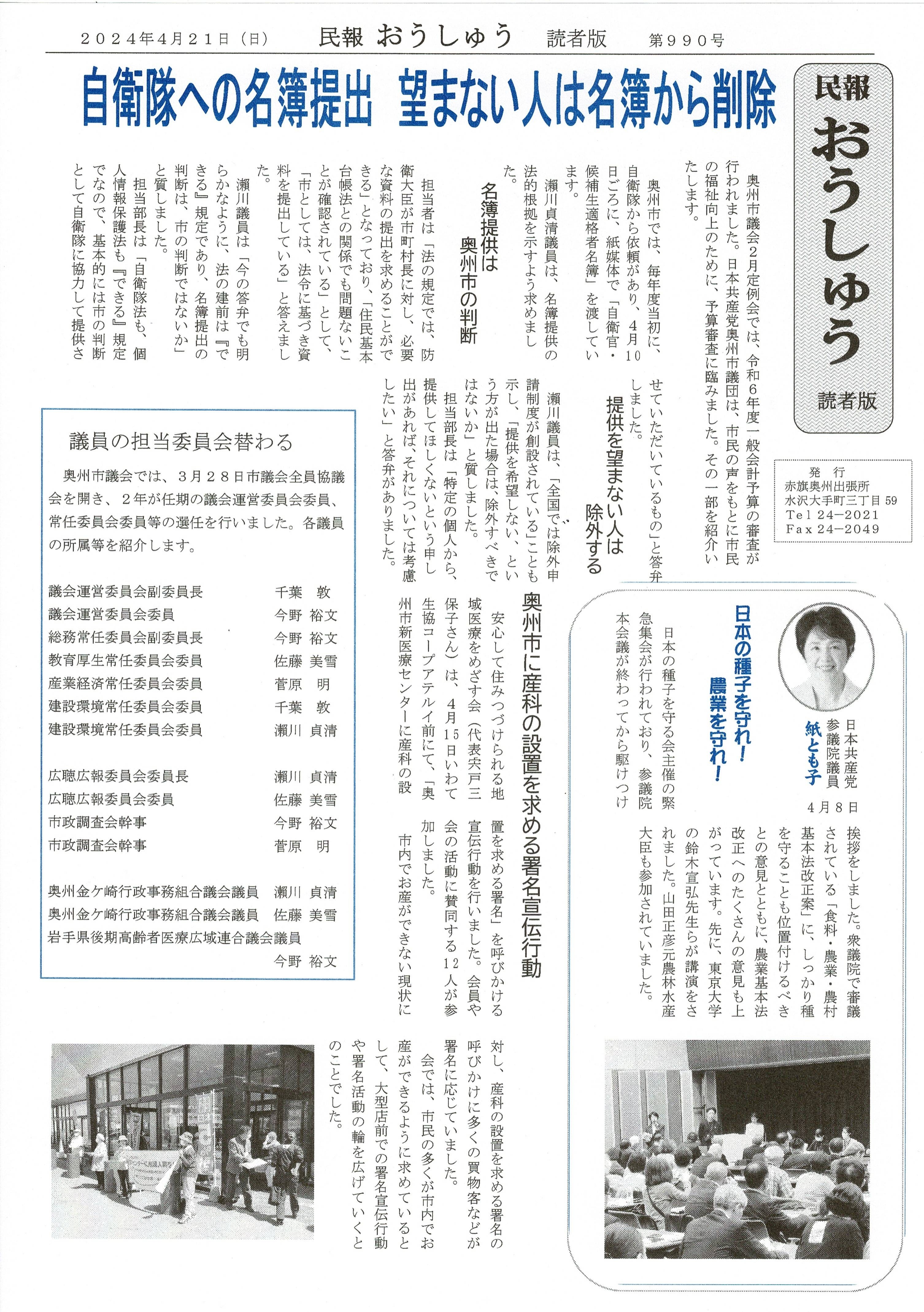 「民報おうしゅう第990号」はこちら