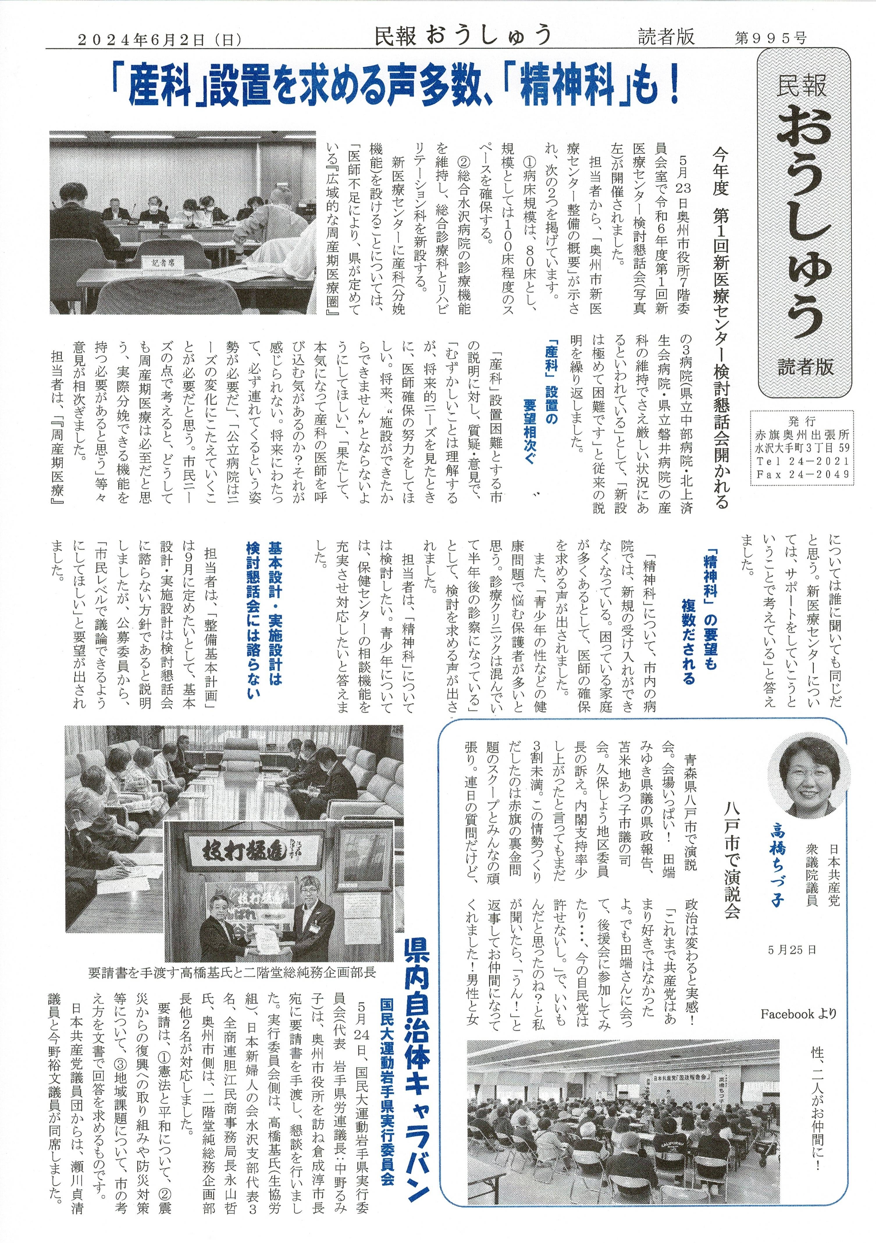 「民報おうしゅう第995号」はこちら