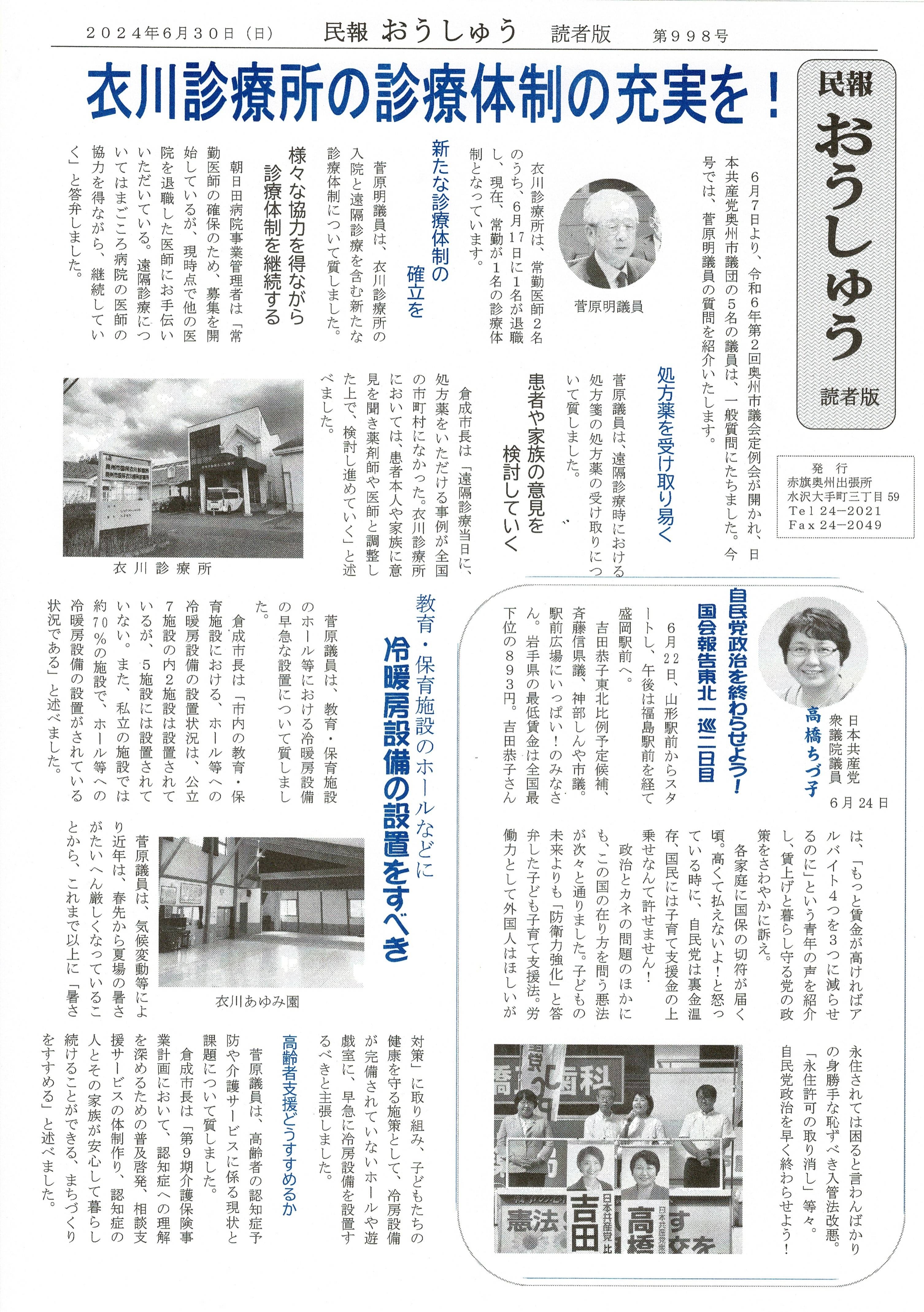 「民報おうしゅう第998号」はこちら