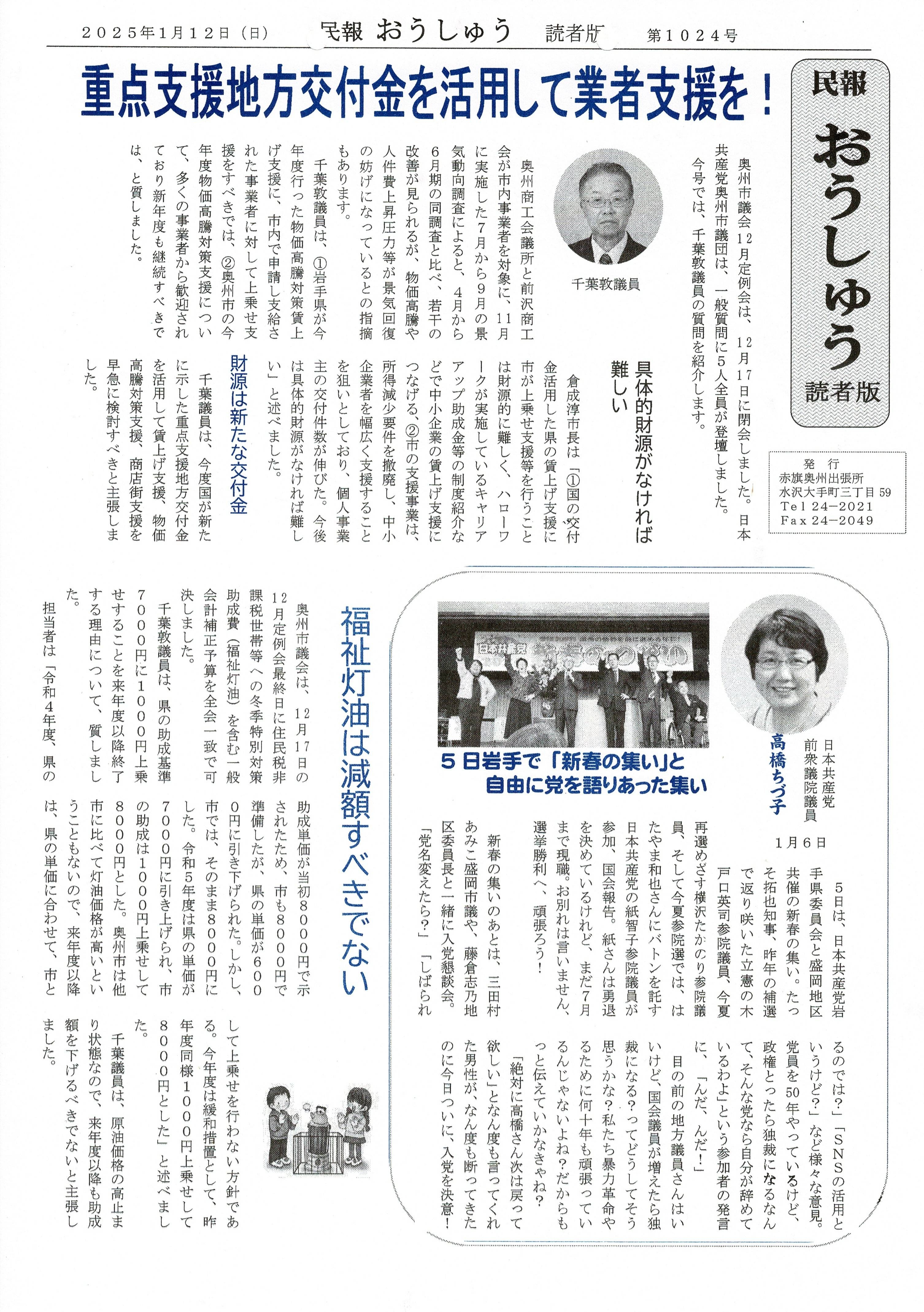 「民報おうしゅう第1024号」はこちら