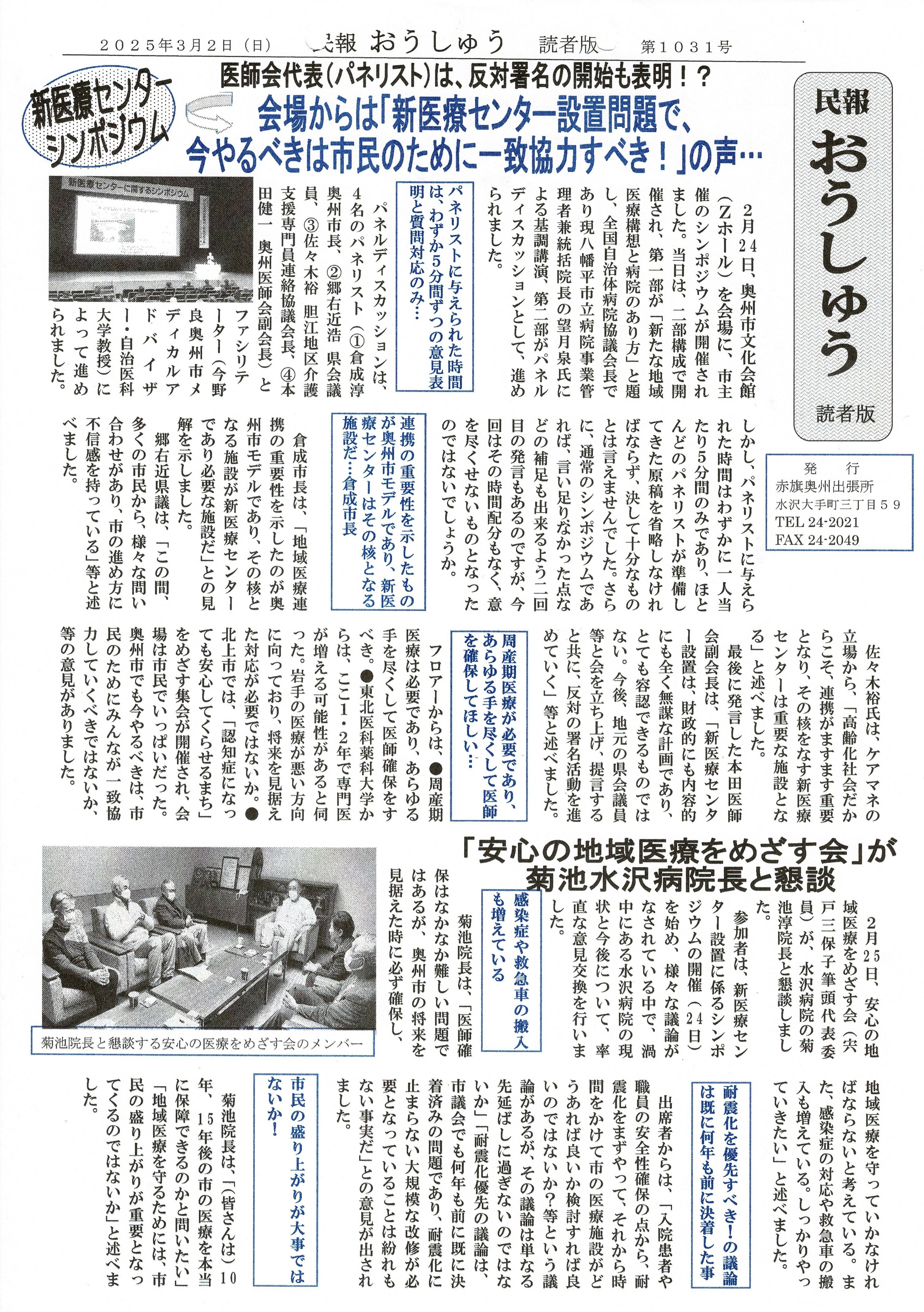 「民報おうしゅう第1031号」はこちら