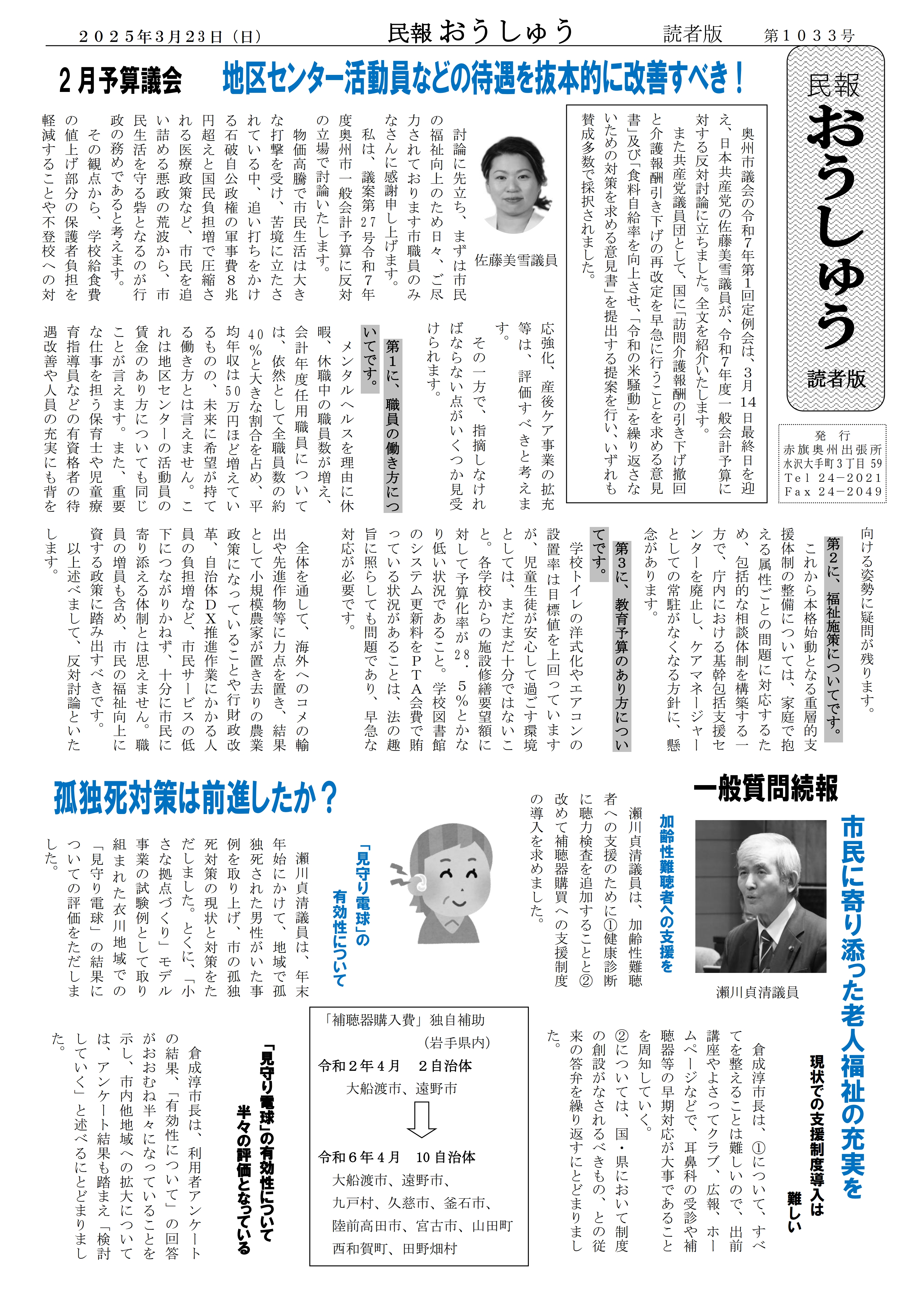 「民報おうしゅう第1033号」はこちら