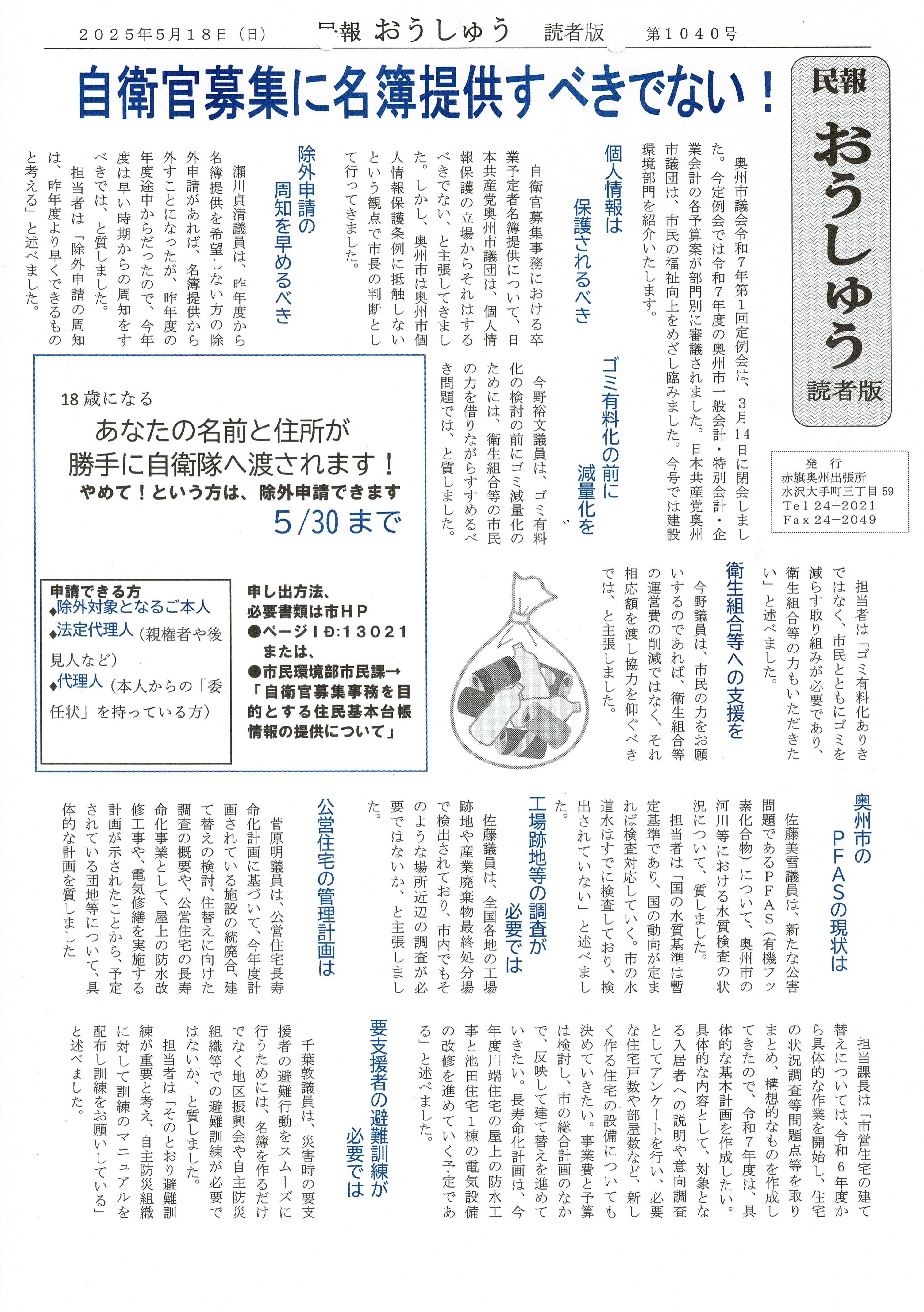 「民報おうしゅう第1045号」はこちら