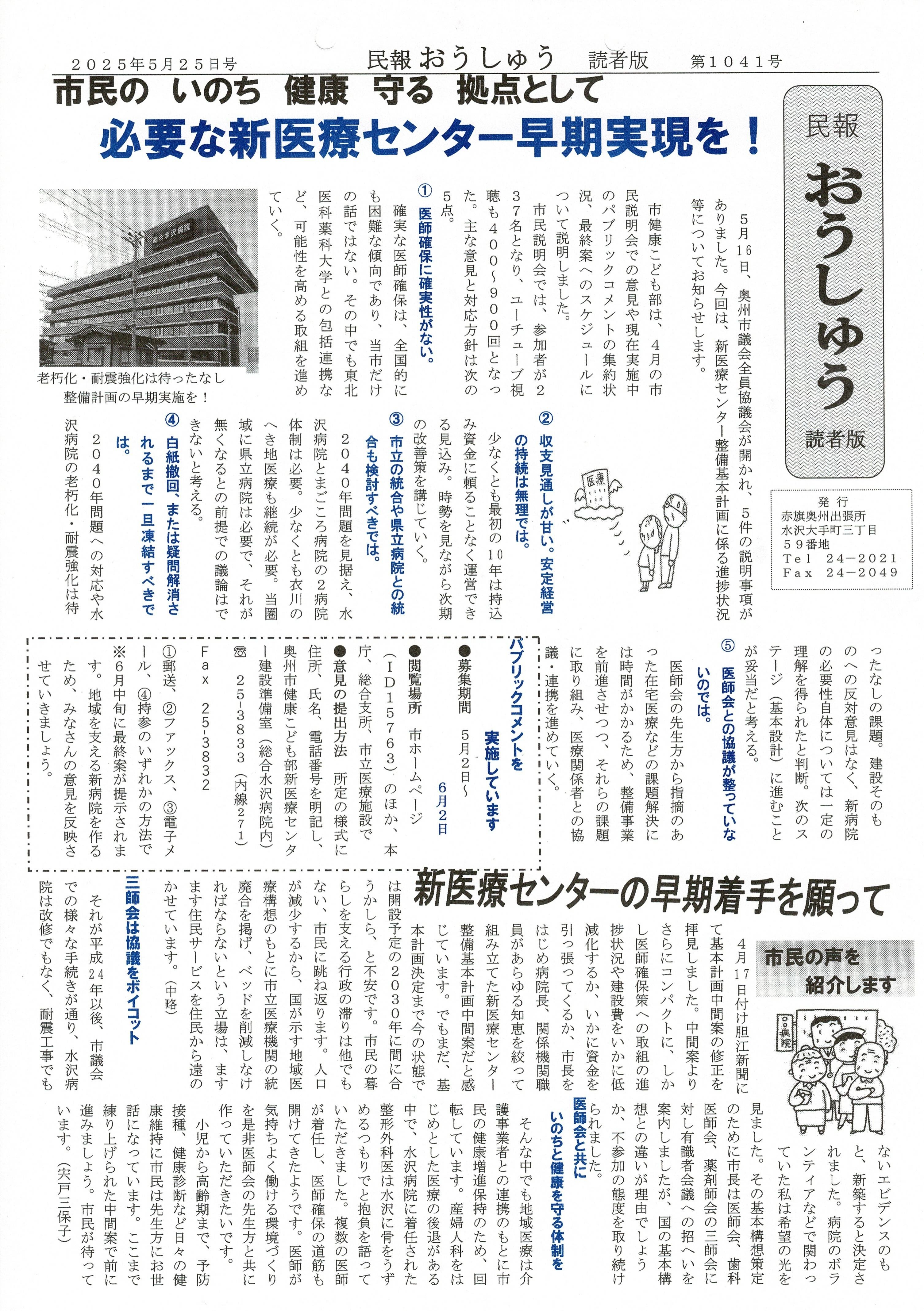「民報おうしゅう第1041号」はこちら