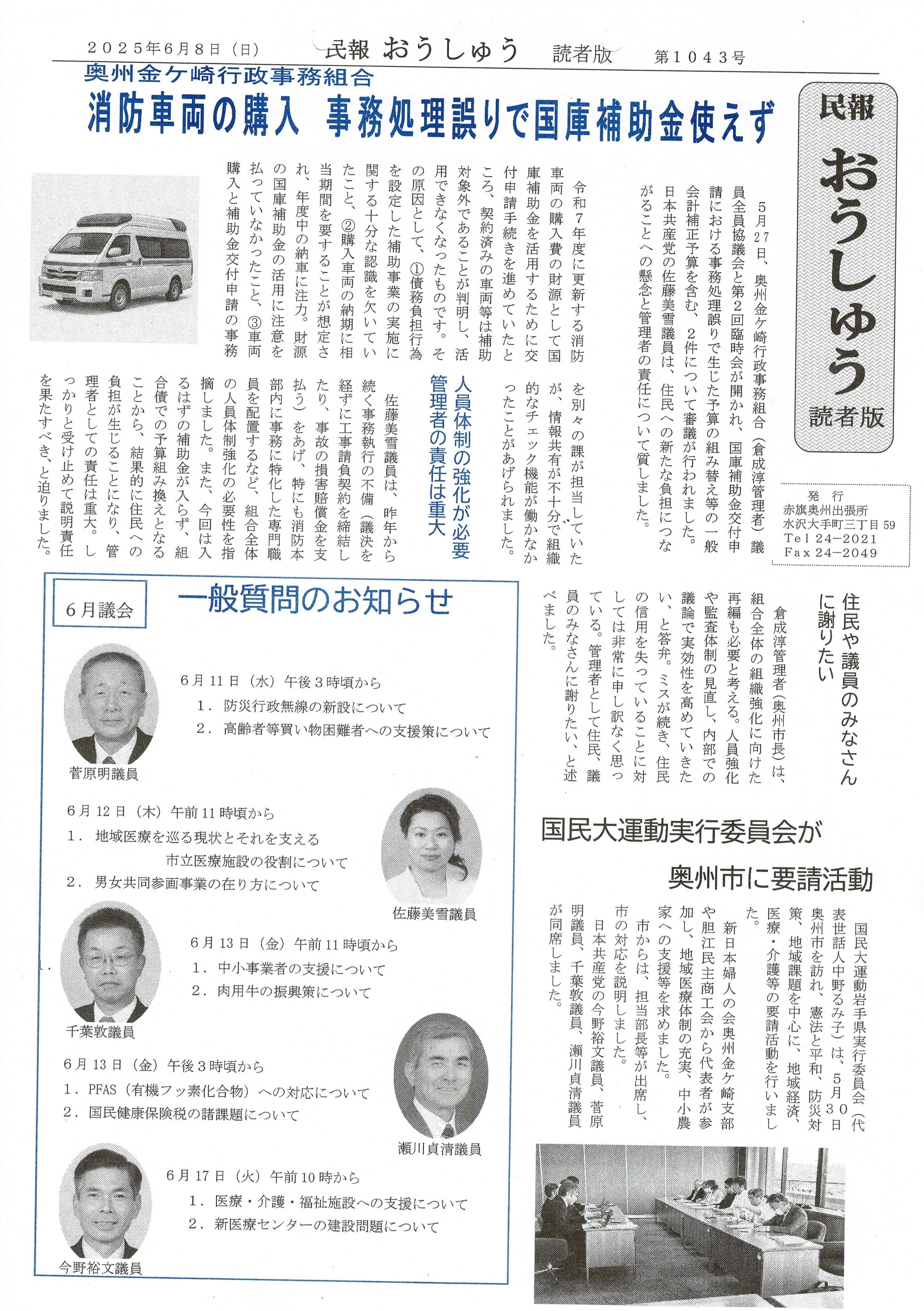 「民報おうしゅう第1043号」はこちら