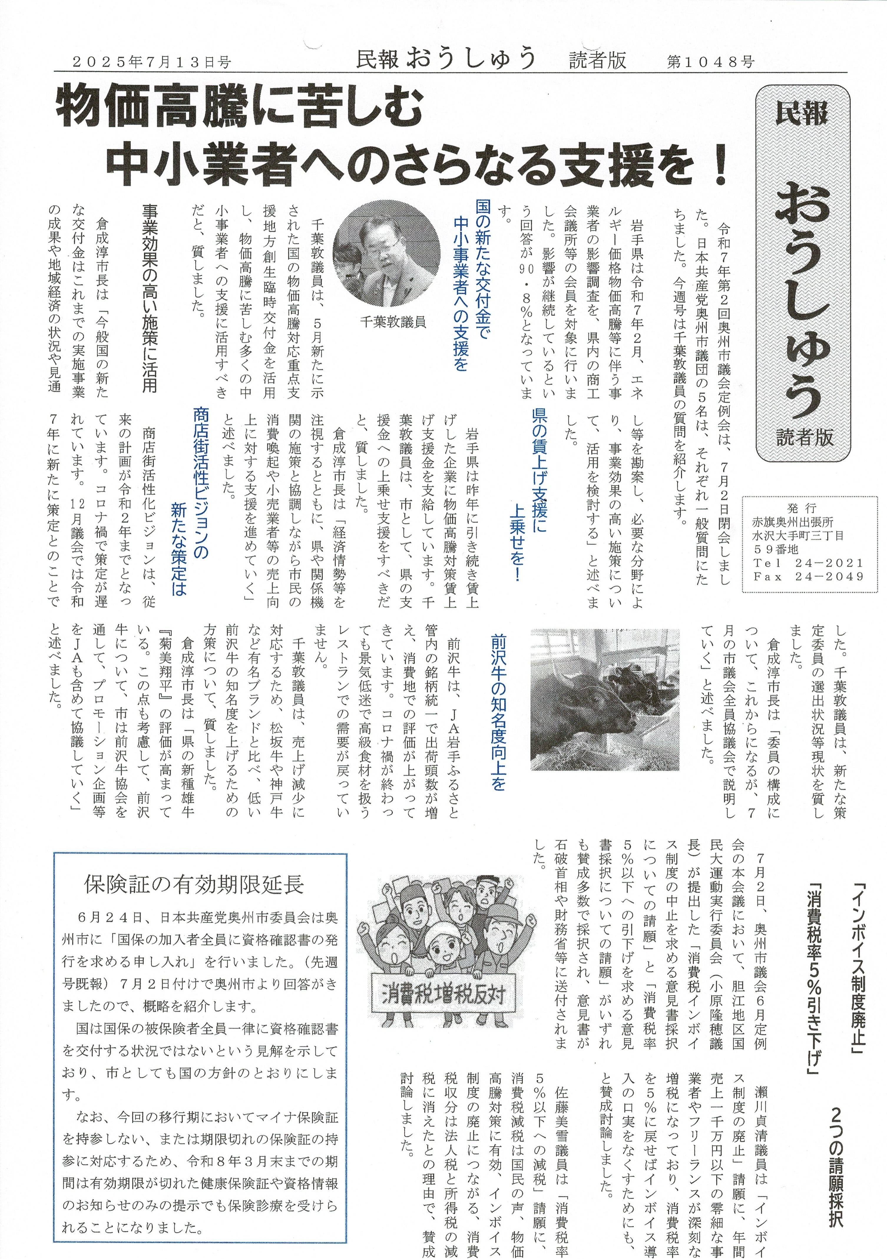 「民報おうしゅう第1049号」はこちら