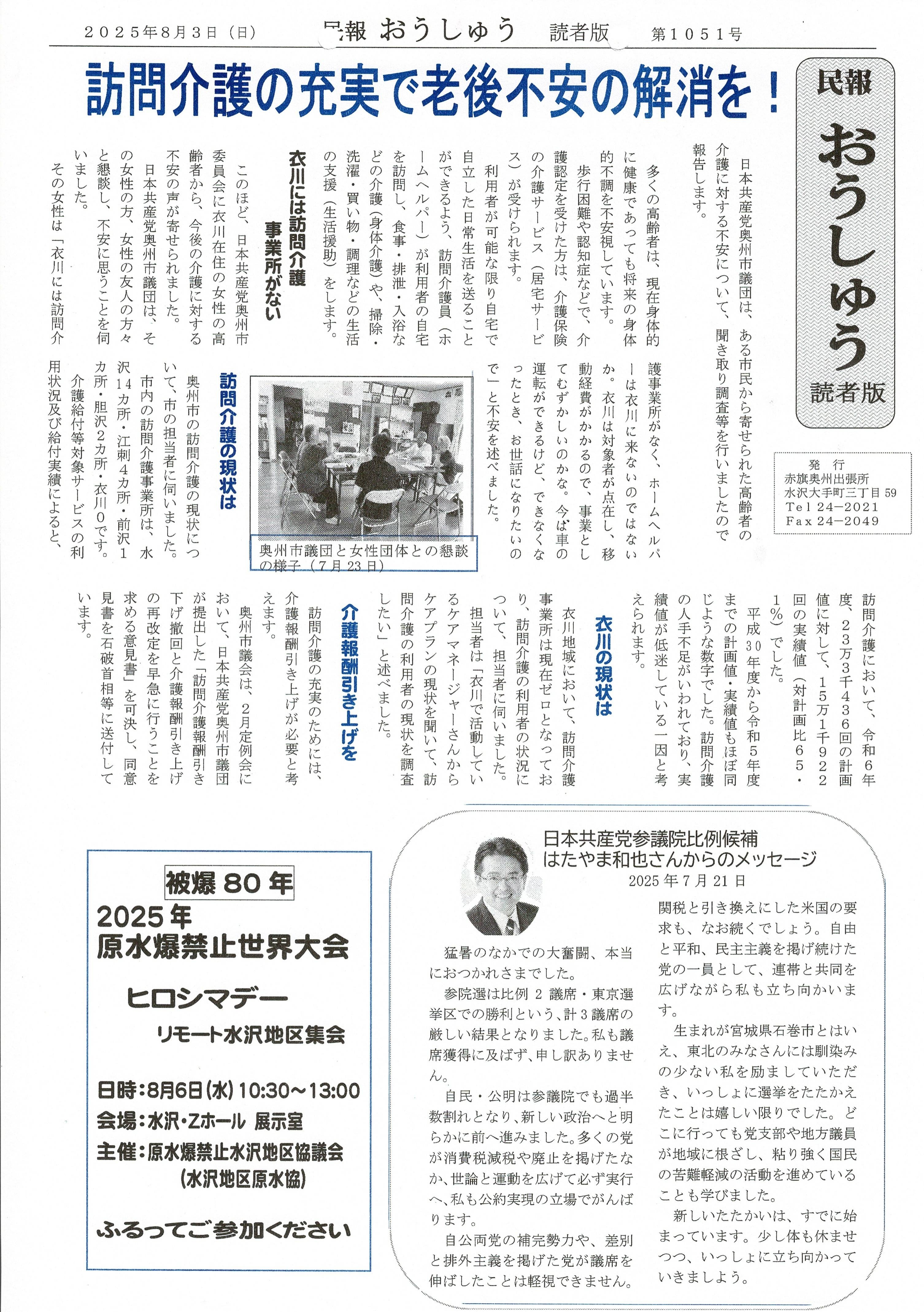 「民報おうしゅう第1051号」はこちら