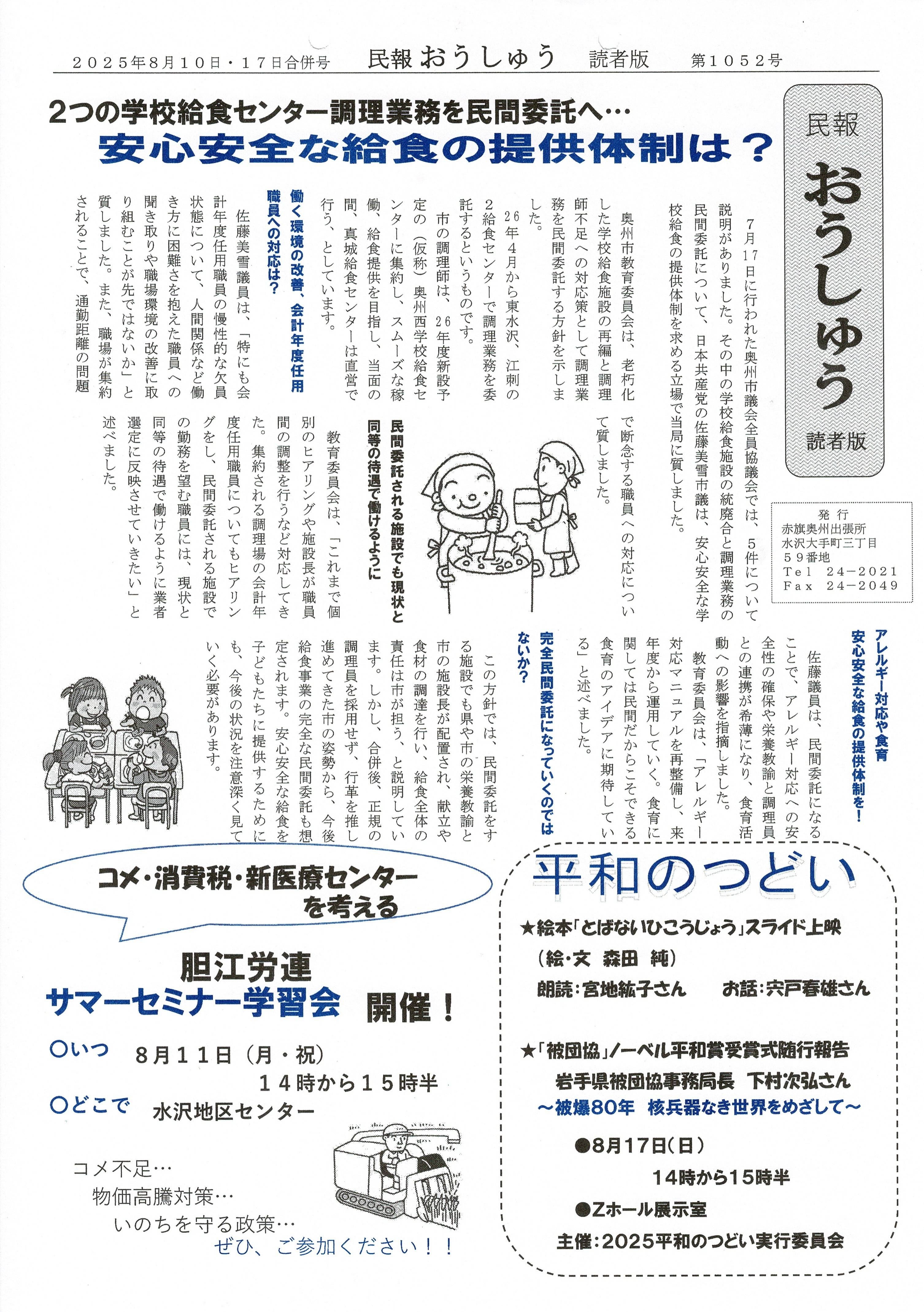 「民報おうしゅう第1052号」はこちら