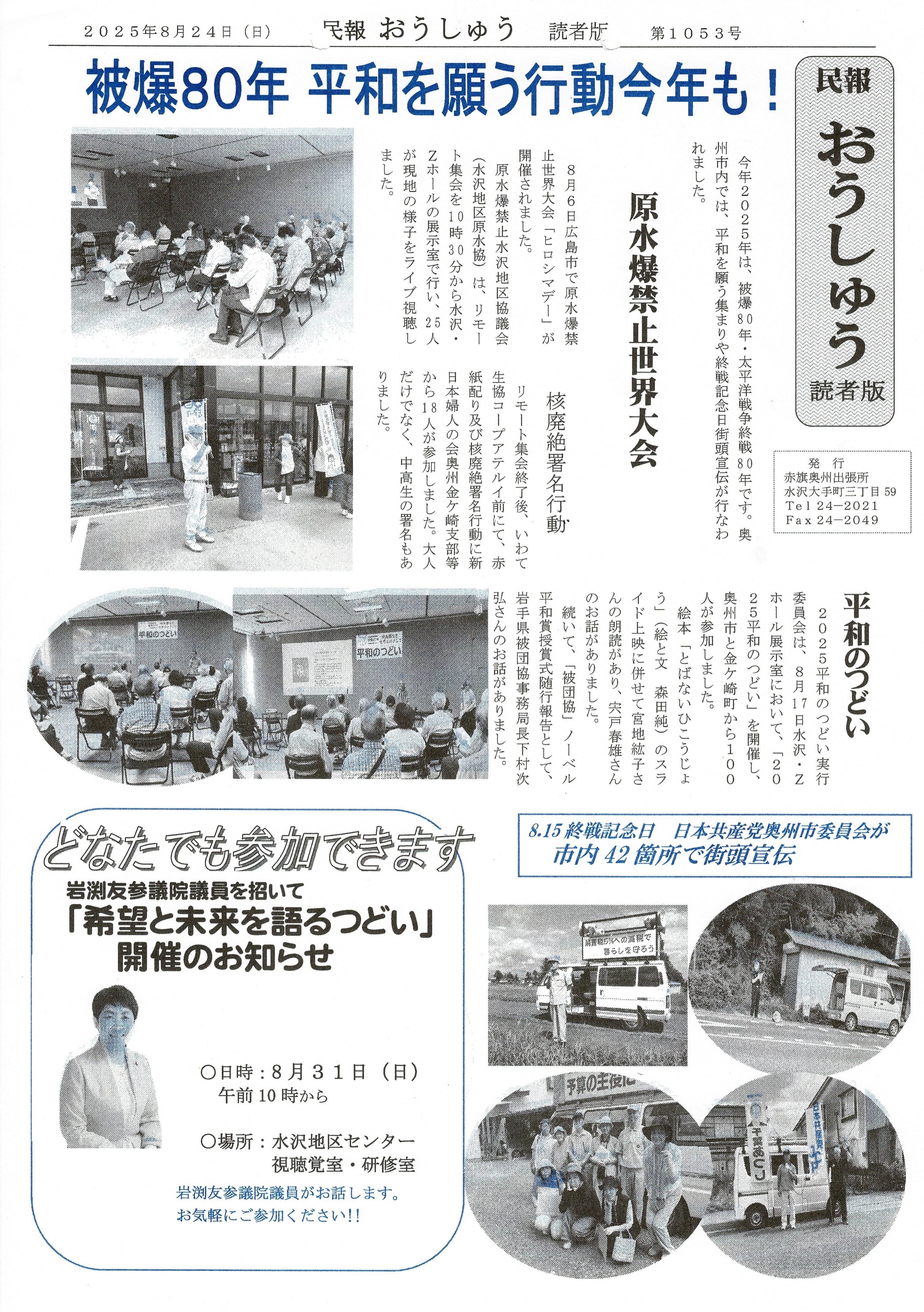 「民報おうしゅう第1053号」はこちら