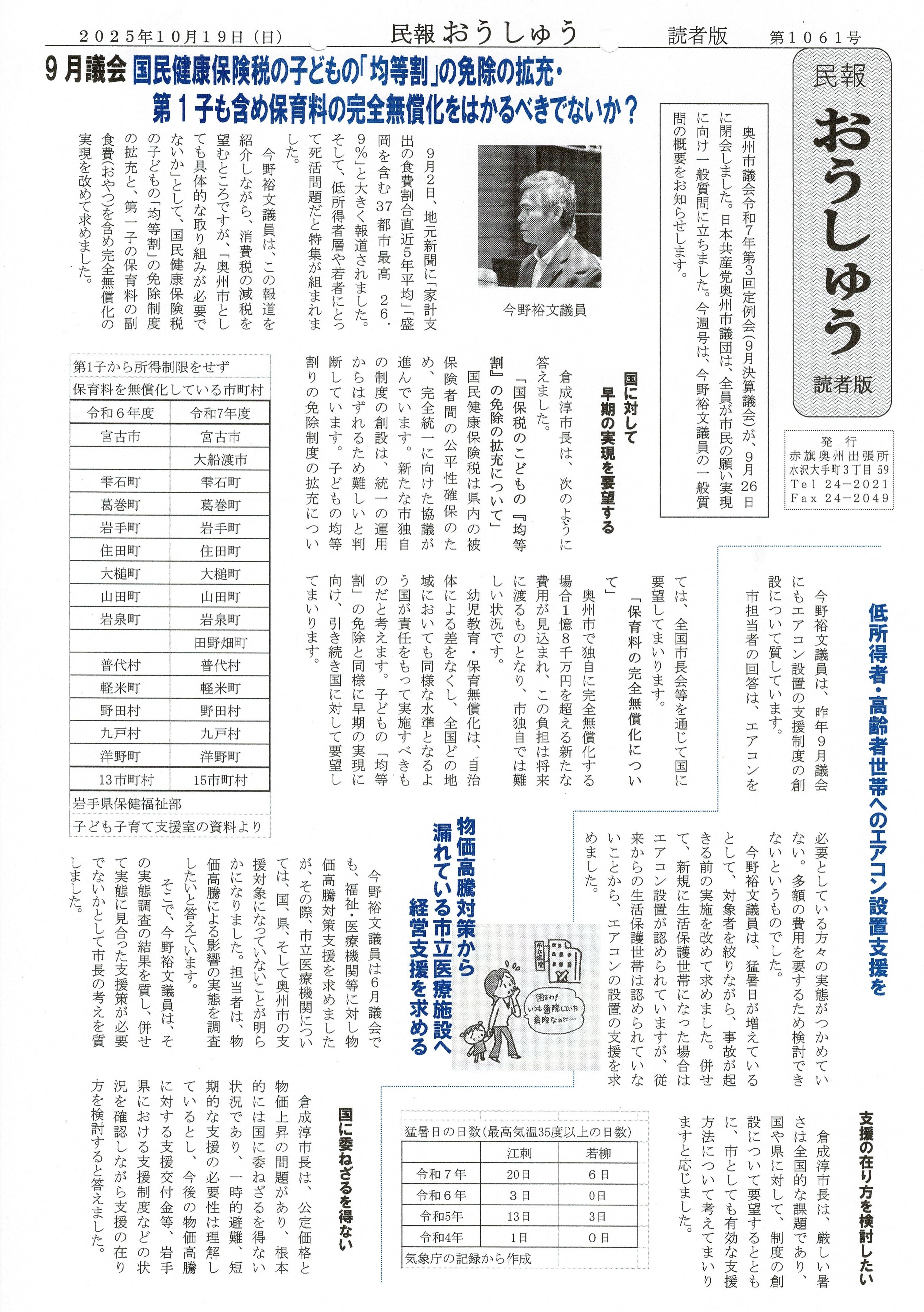 「民報おうしゅう第1061号」はこちら