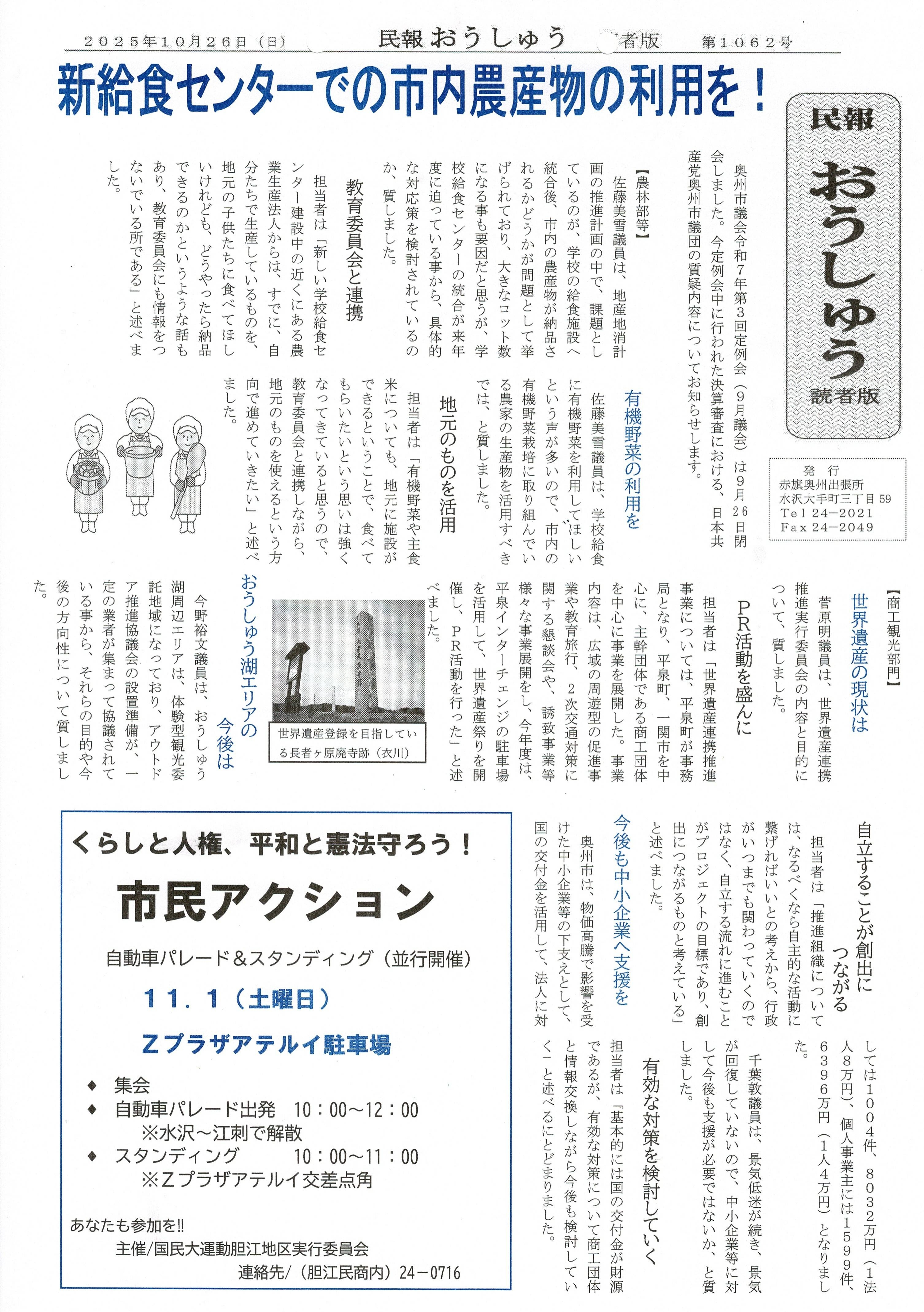 「民報おうしゅう第1062号」はこちら