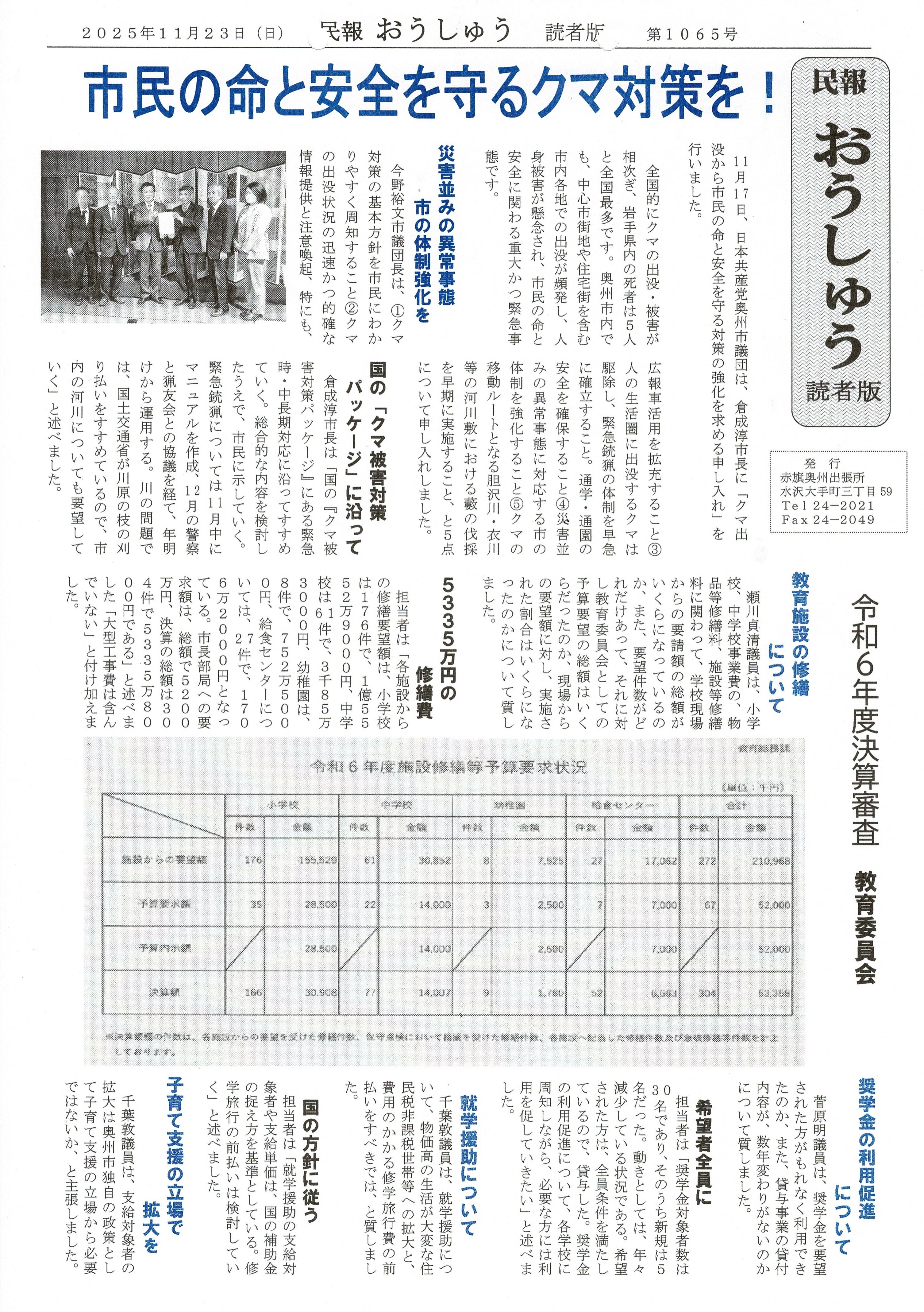 「民報おうしゅう第1065号」はこちら