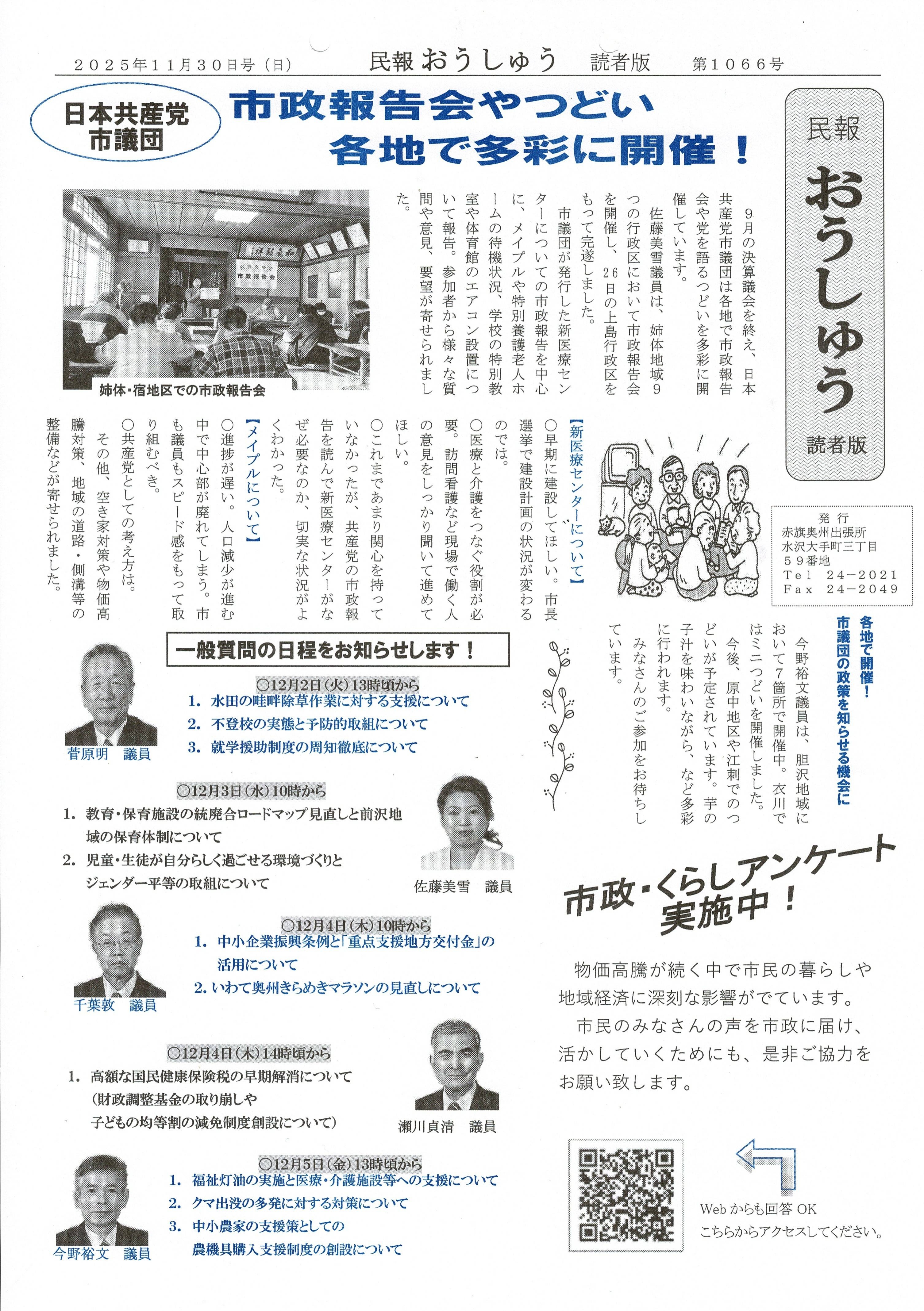 「民報おうしゅう第1066号」はこちら