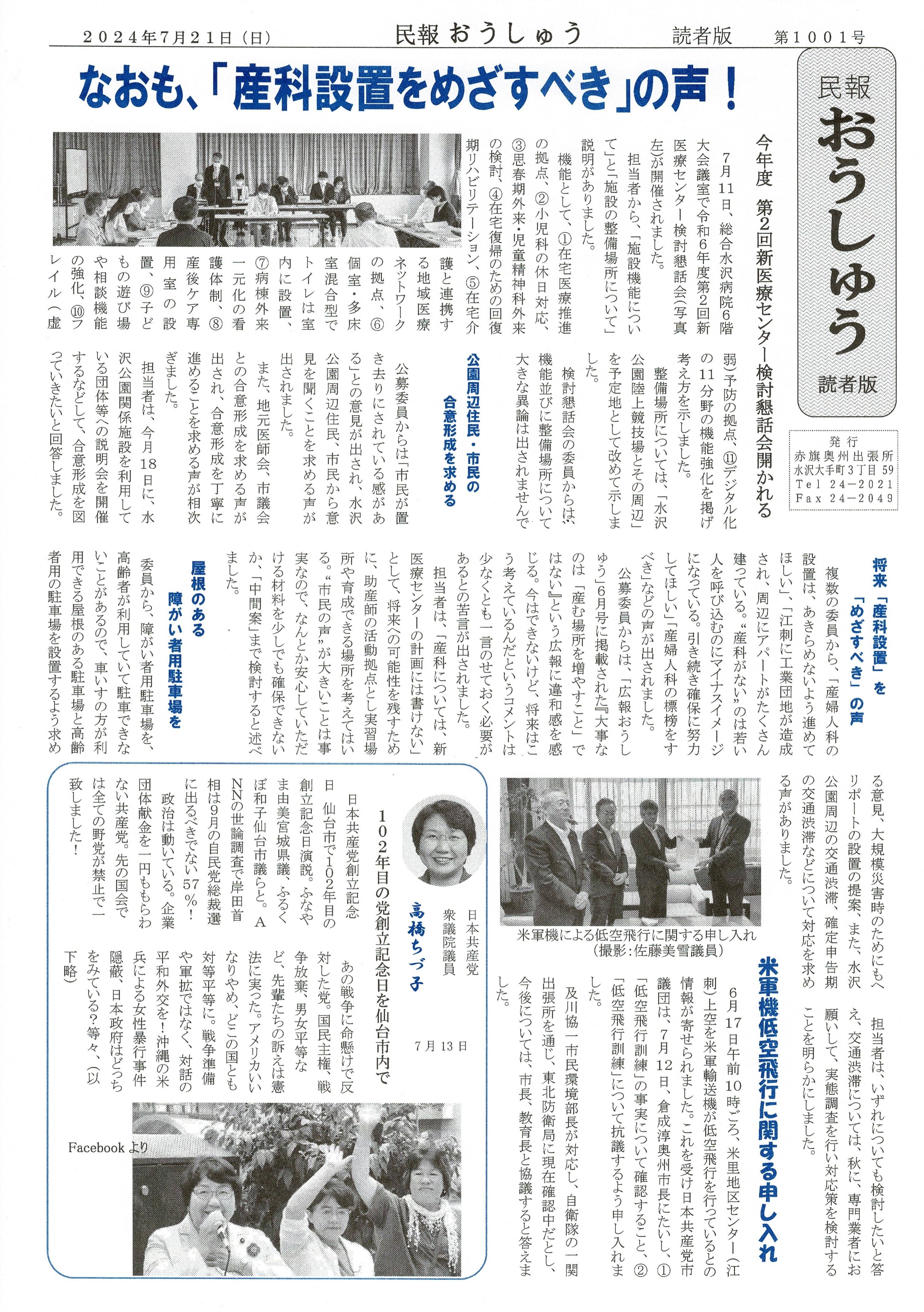 「民報おうしゅう第1001号」はこちら