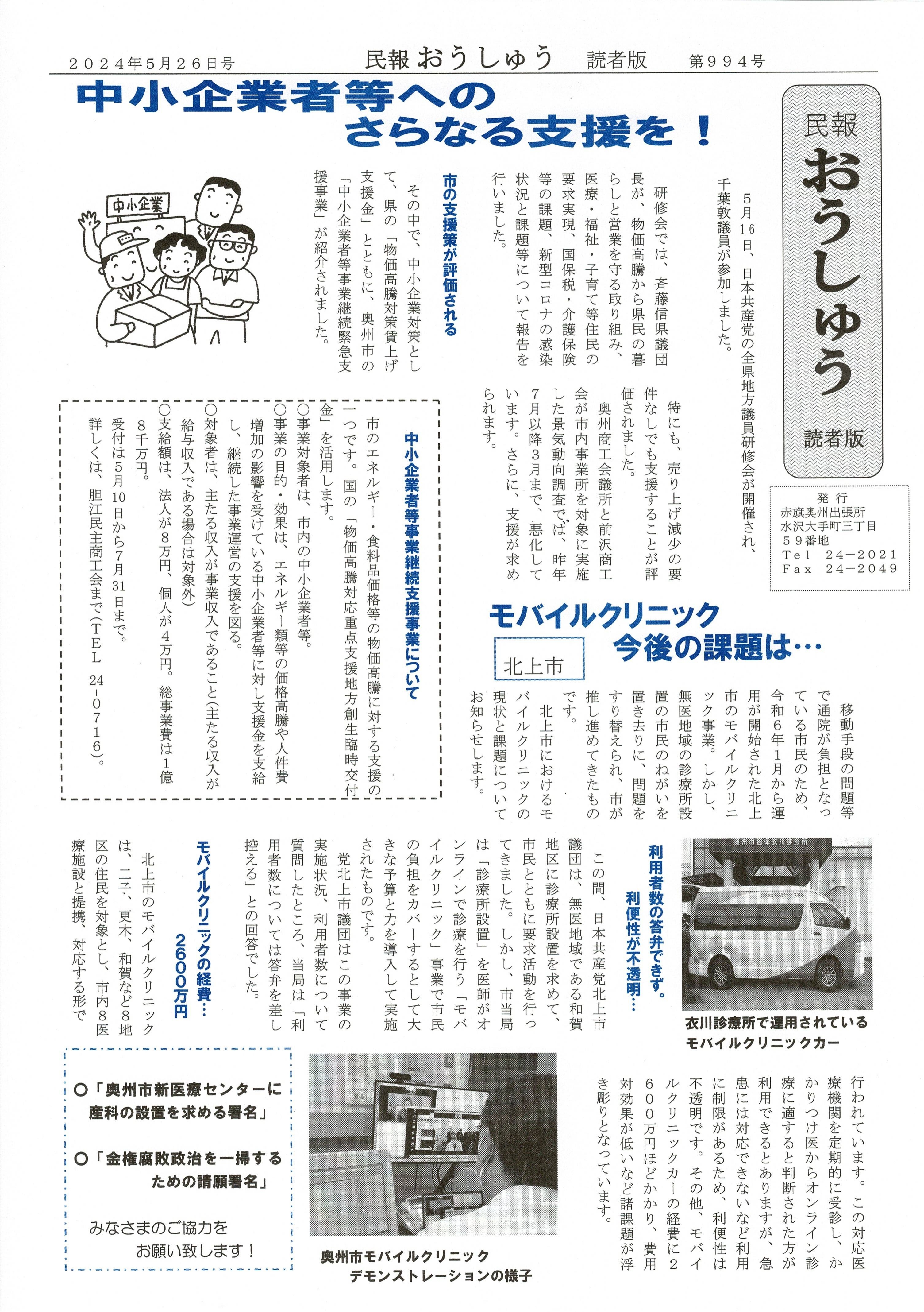 「民報おうしゅう第994号」はこちら