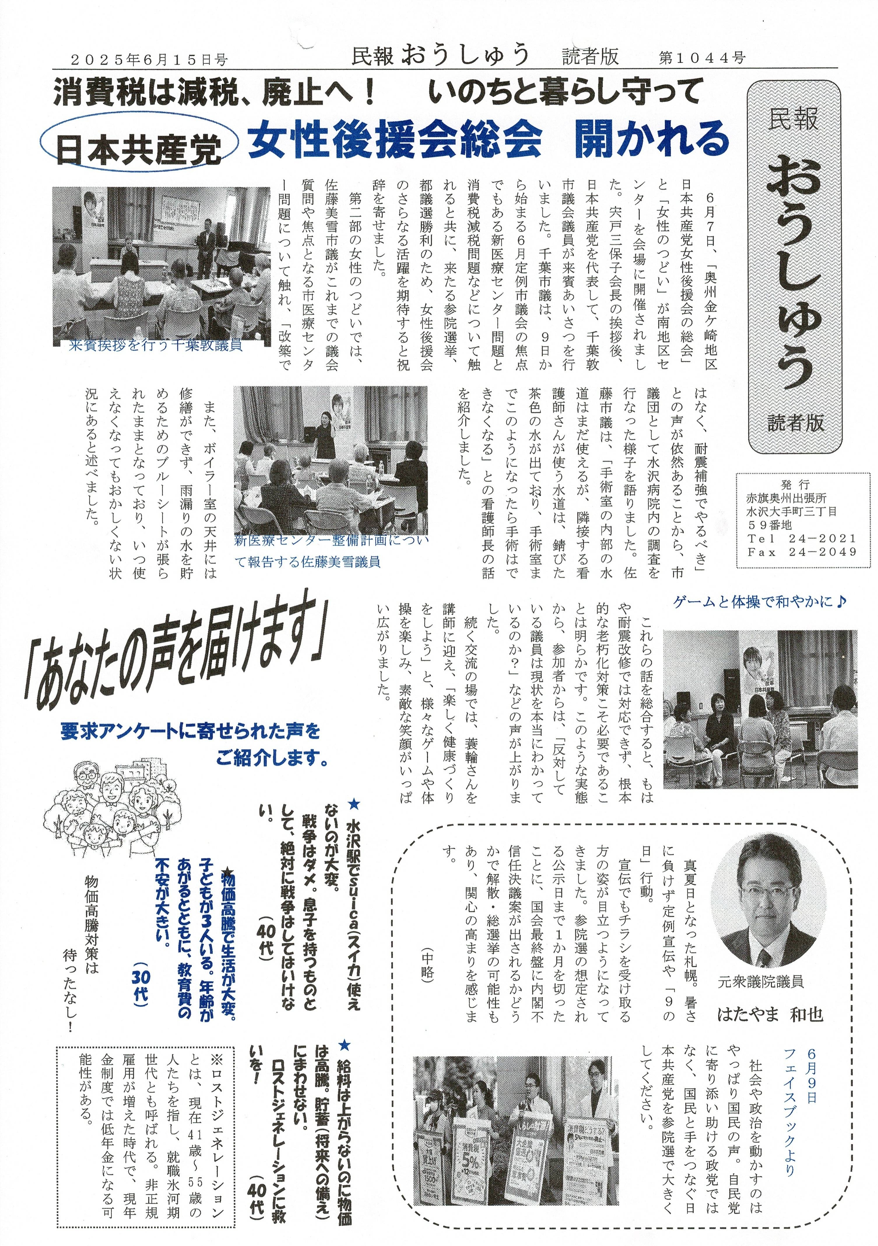 「民報おうしゅう第1044号」はこちら