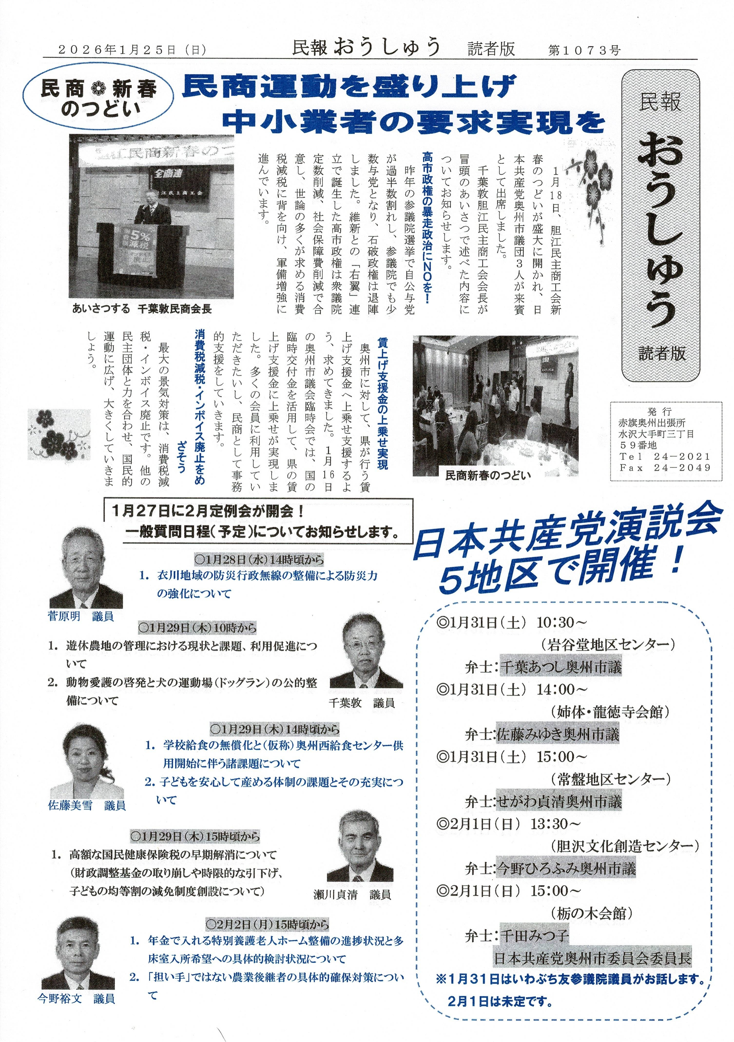 「民報おうしゅう第1073号」はこちら